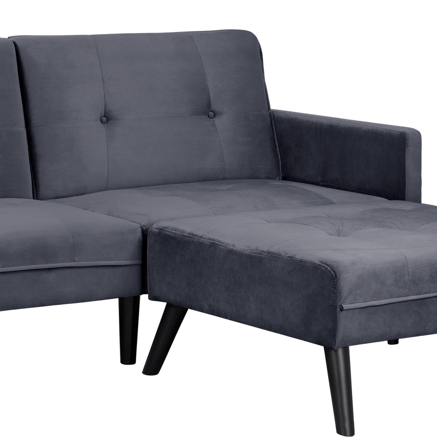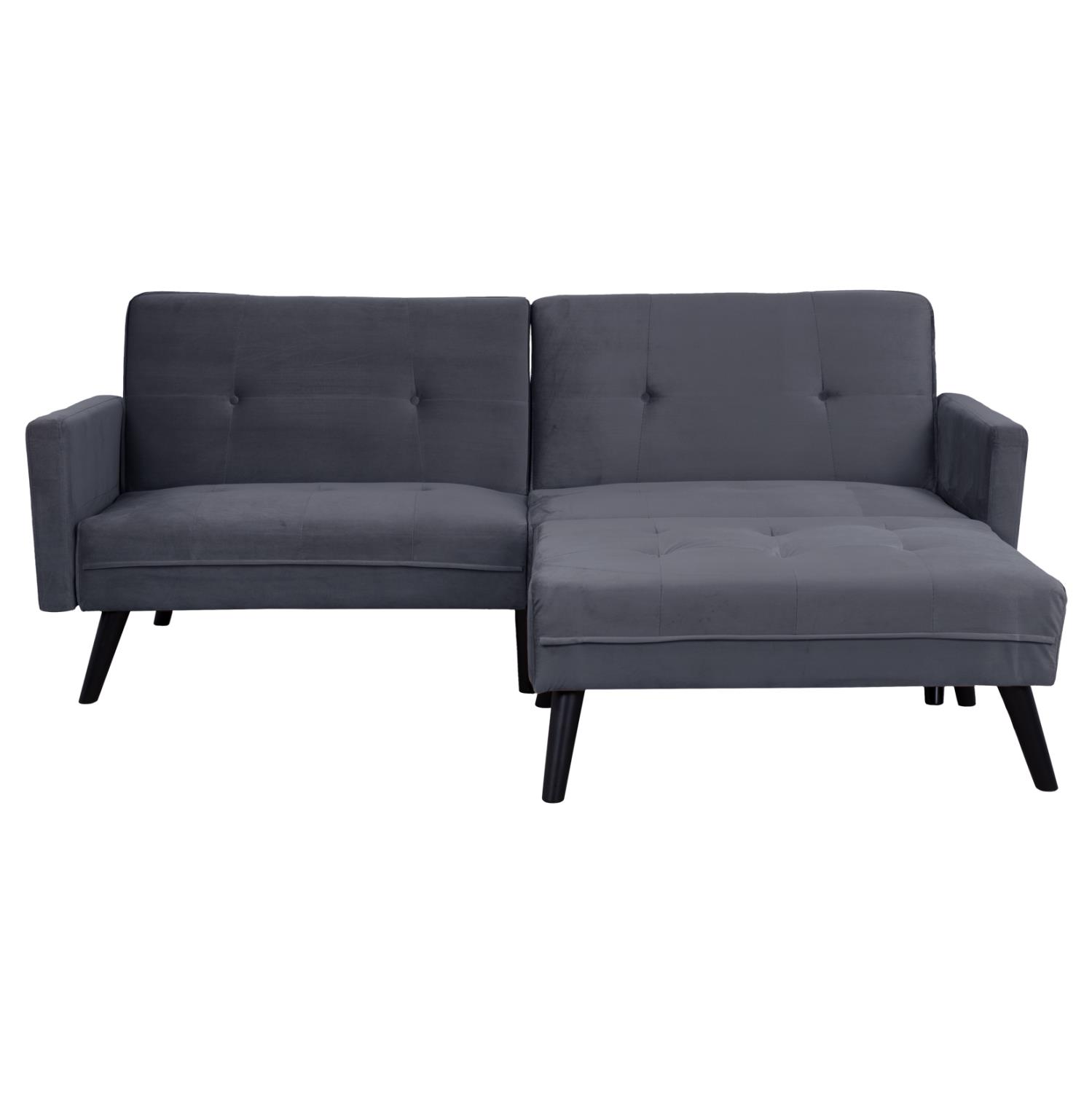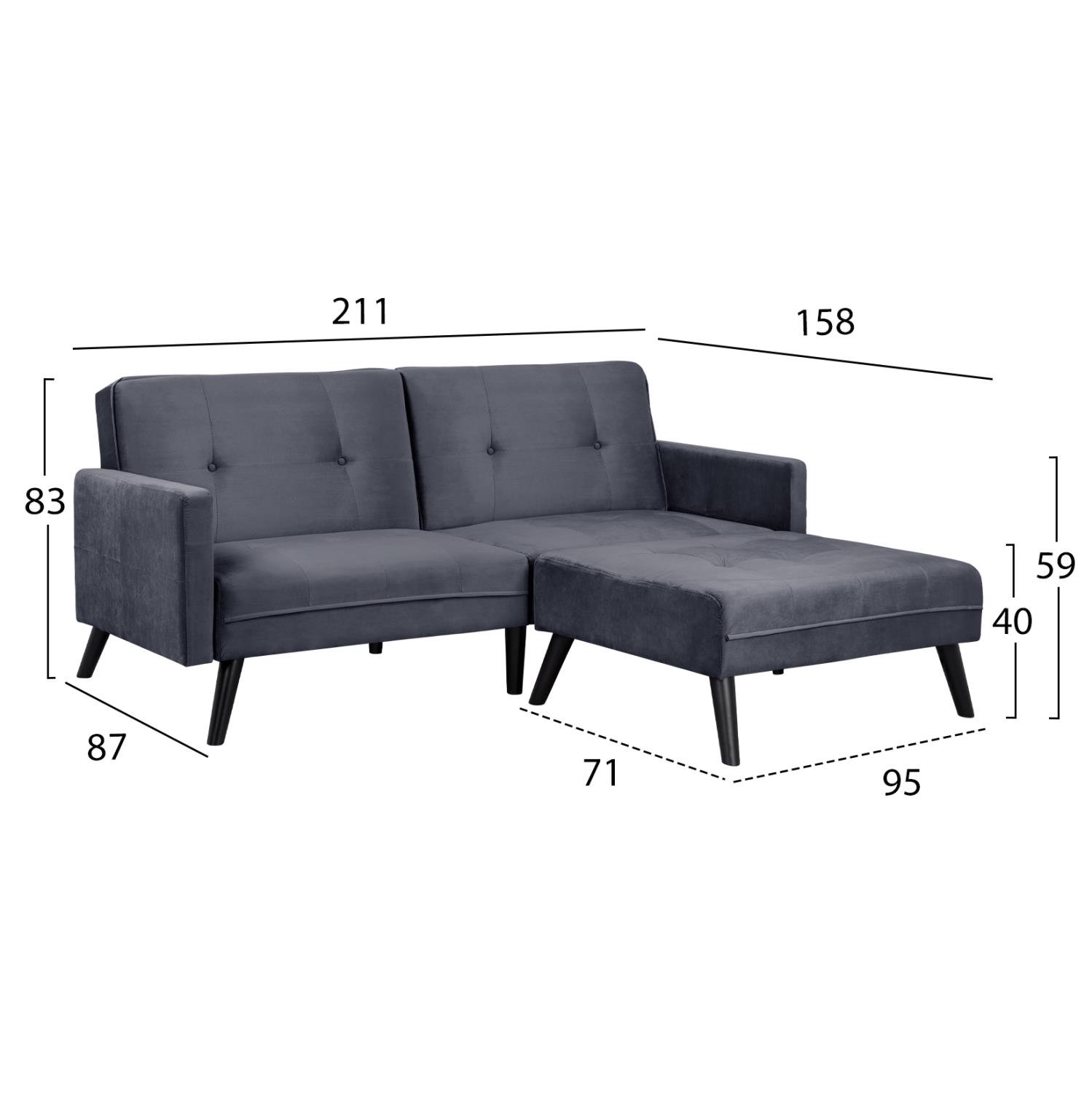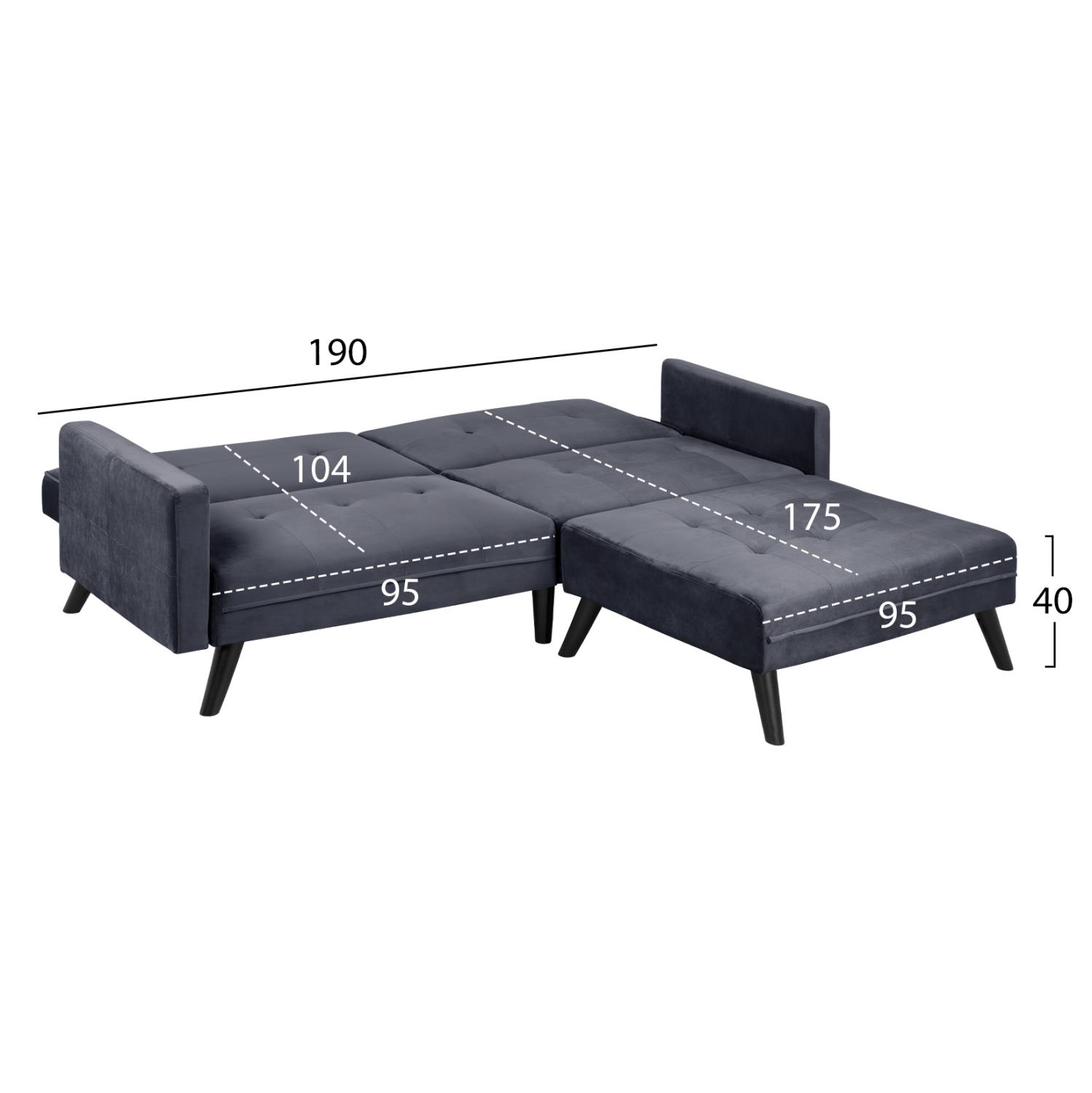 Corner Sofa with velvet footrest in grey color, which turns into a bed and therefore in addition to the quality and aesthetics, offers the functionality necessary in any home.