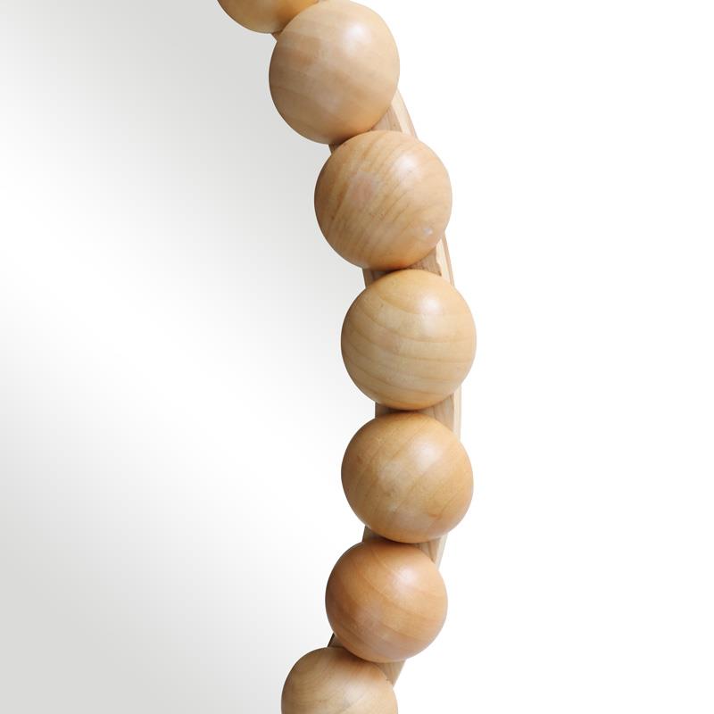 - The wooden frame provides a warm feel and creates a harmonious contrast with the mirror's surface.