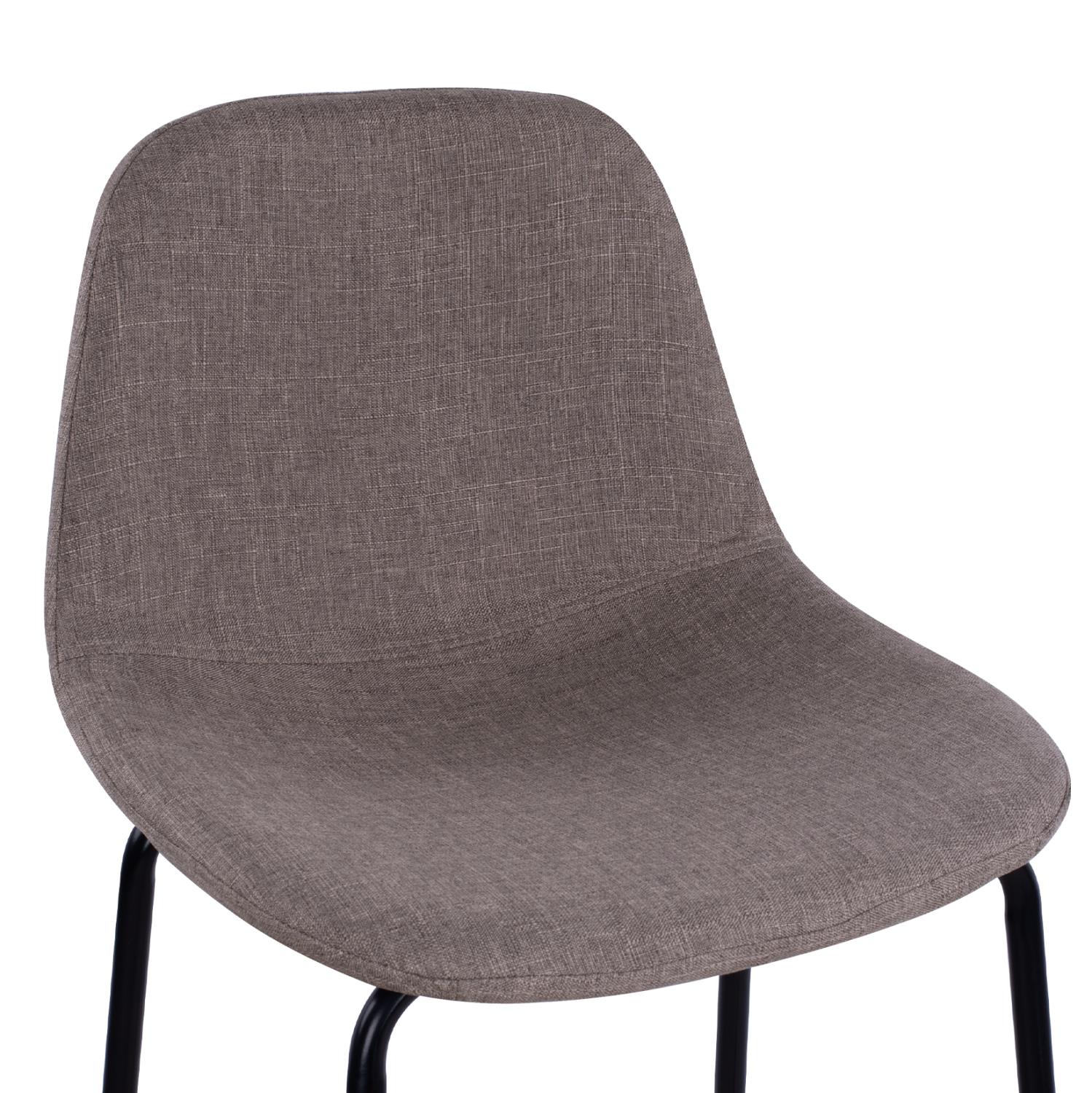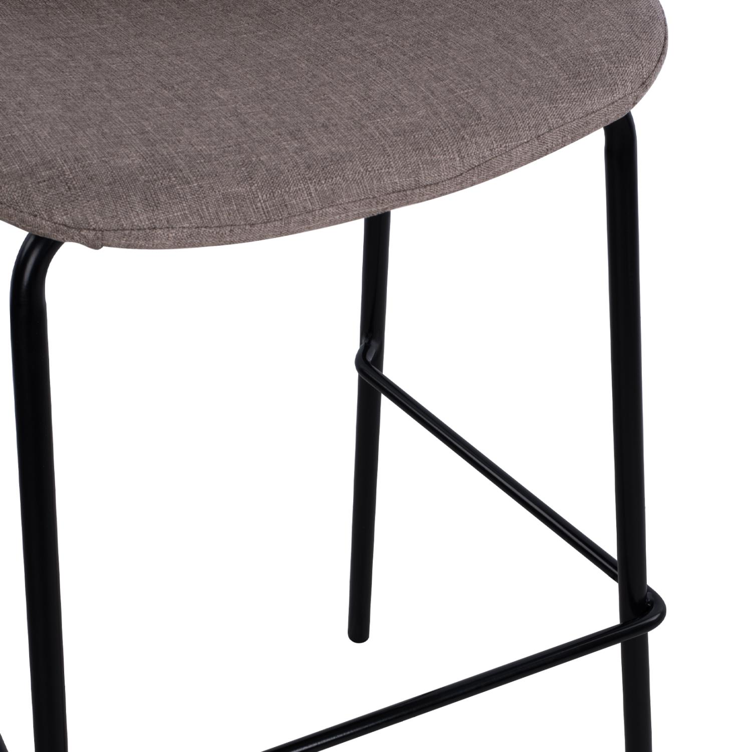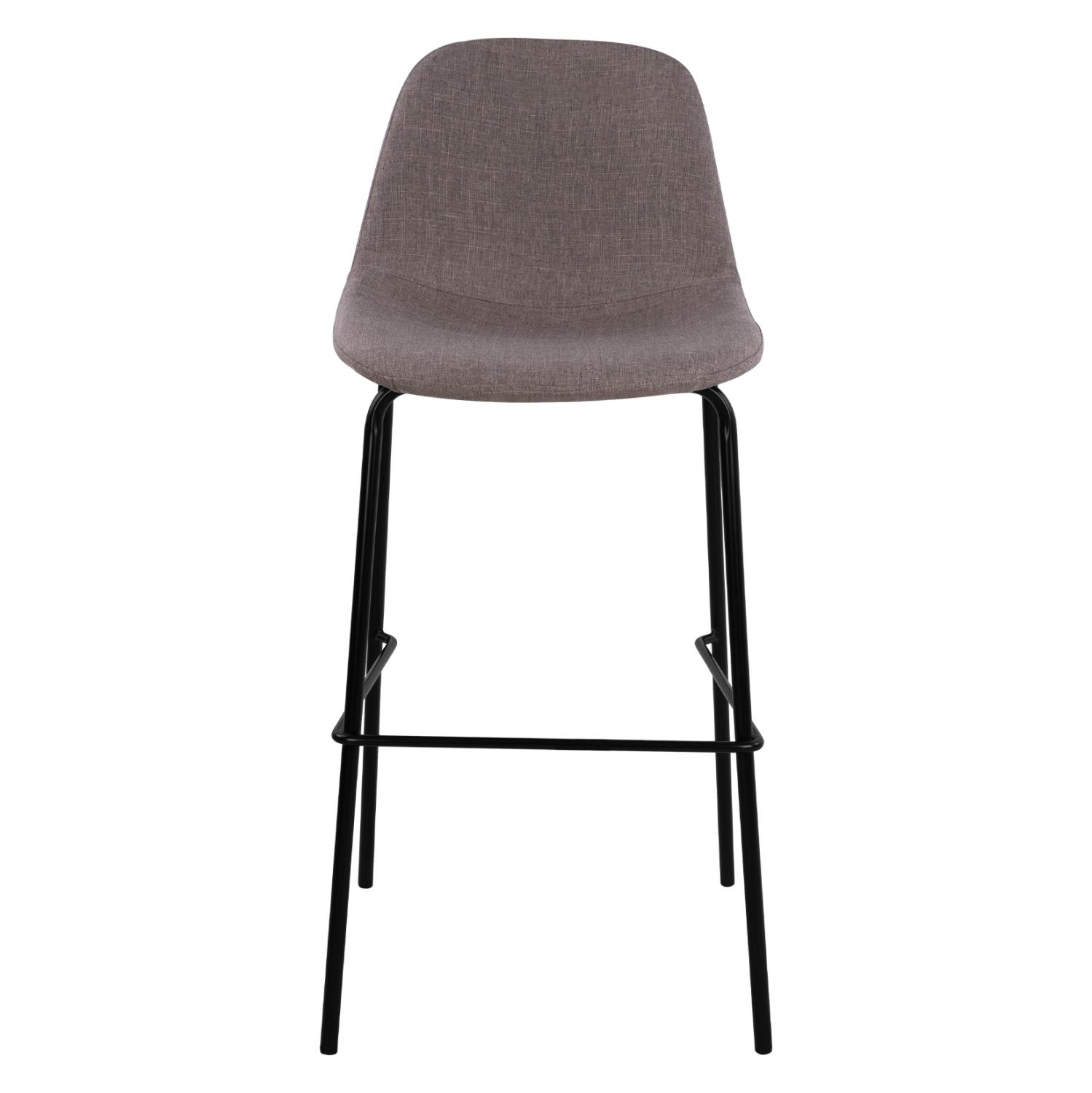 The stool is made of metal in black, and the fabric is brown,