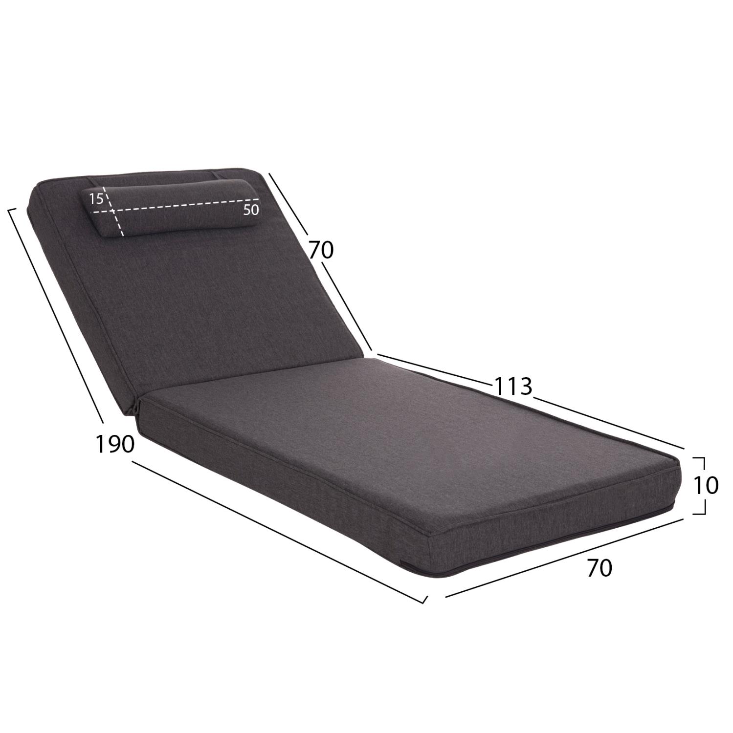 Μαξιλάρι Ξαπλώστρας ΑΚΙΝΟ C21095.02 Σκούρο Γκρί Ύφασμα με Foam 190x70x10Υ εκ.
