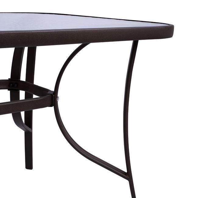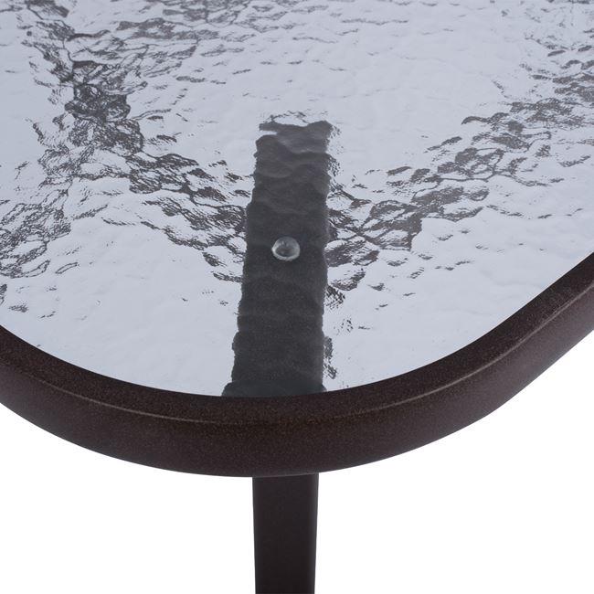 Metallic table for outdoor spaces with security glass.
