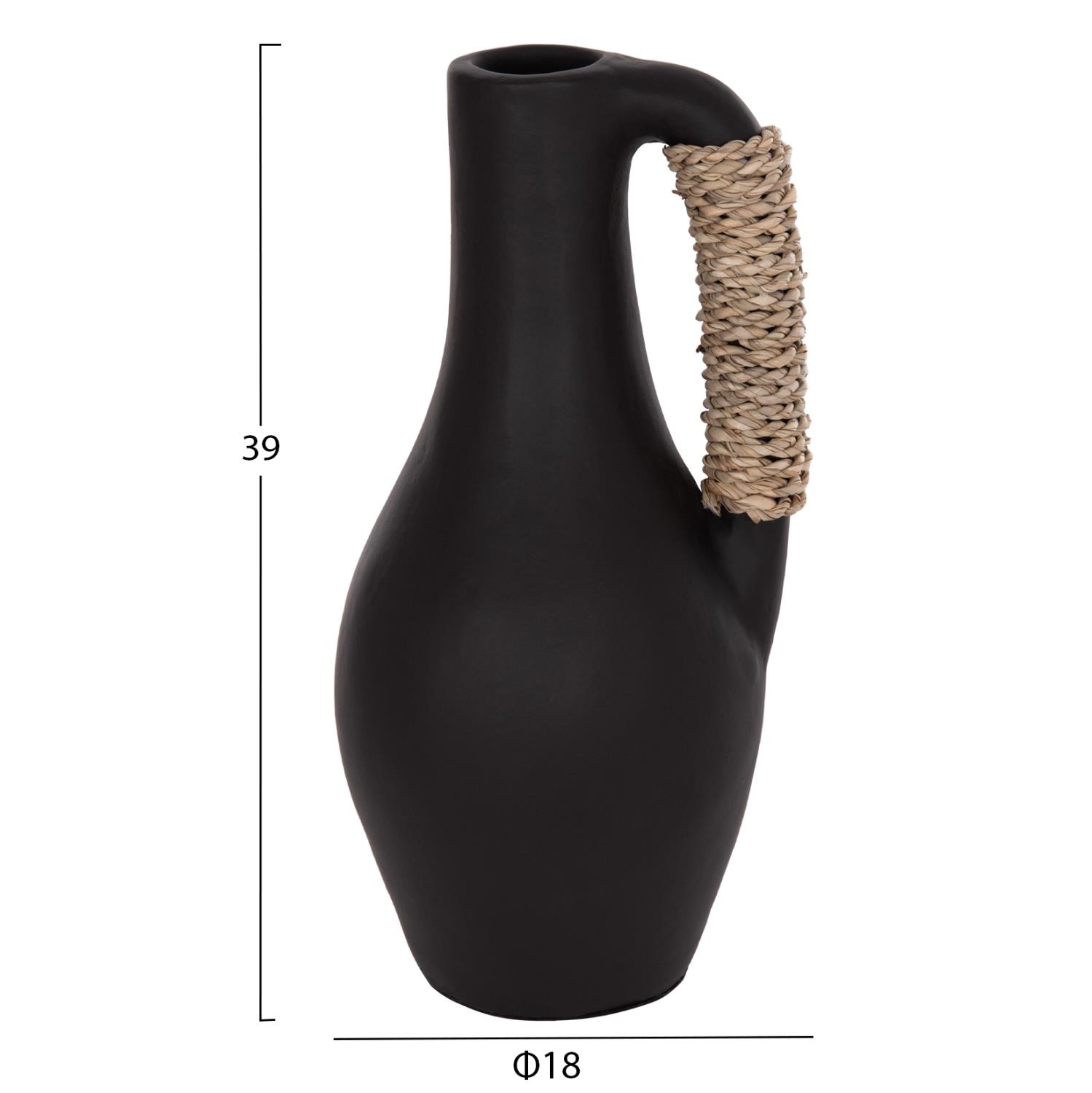 The CAMMER handmade decorative table vase is made entirely of terracotta in BLACK color and features decorative rattan on the nice handle. Ideal for a variety of spaces, both for the home and for professional spaces.