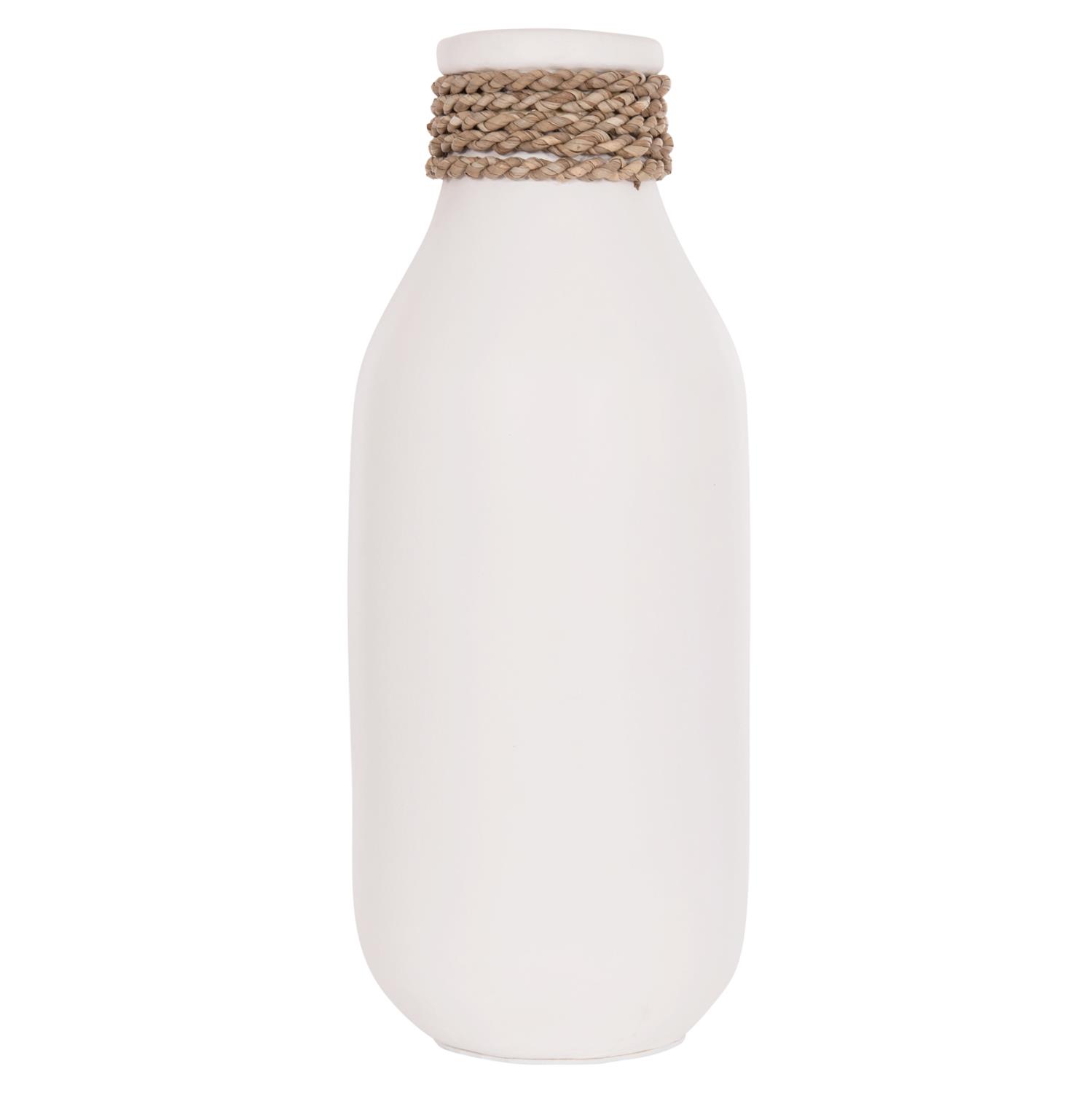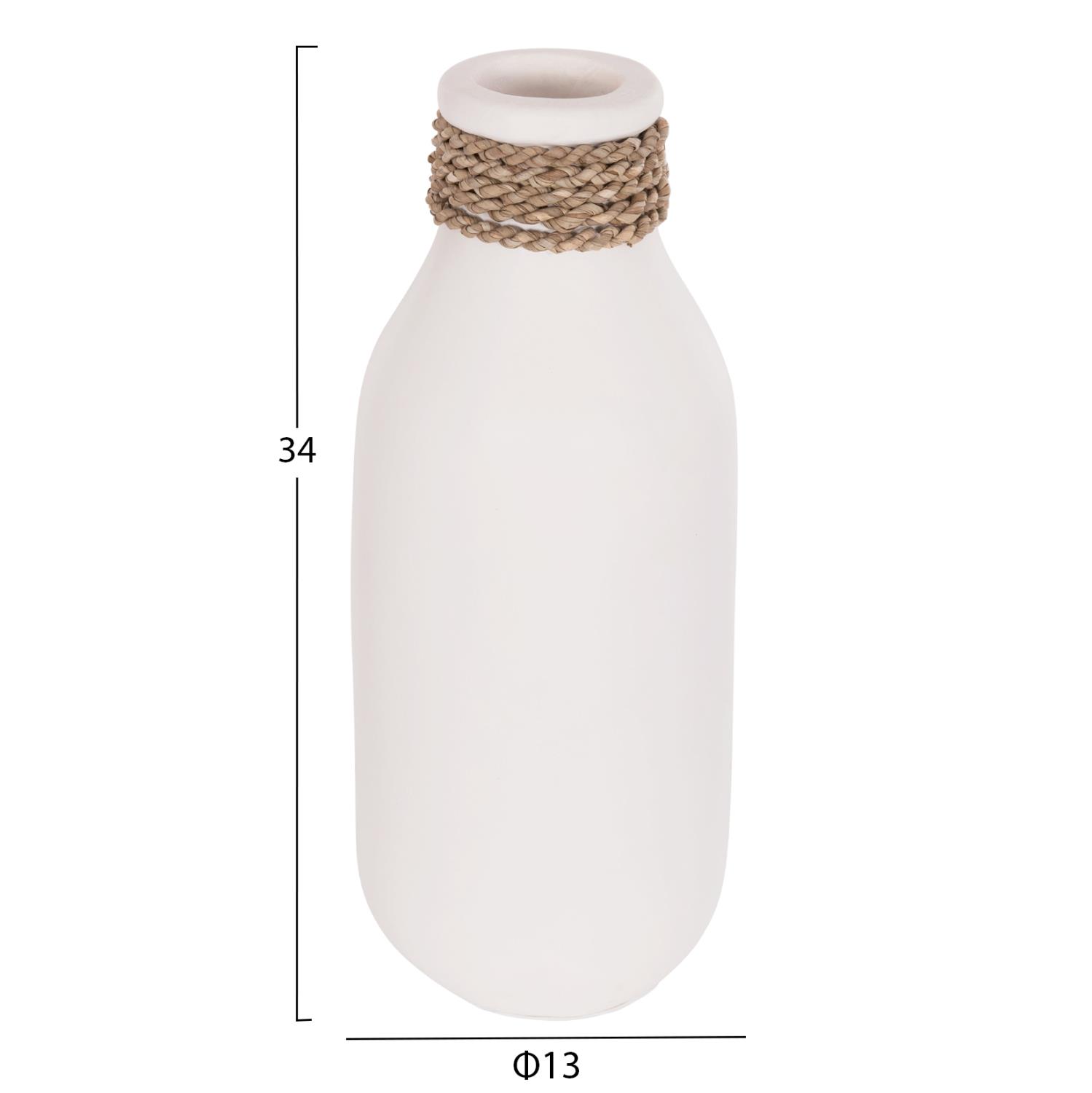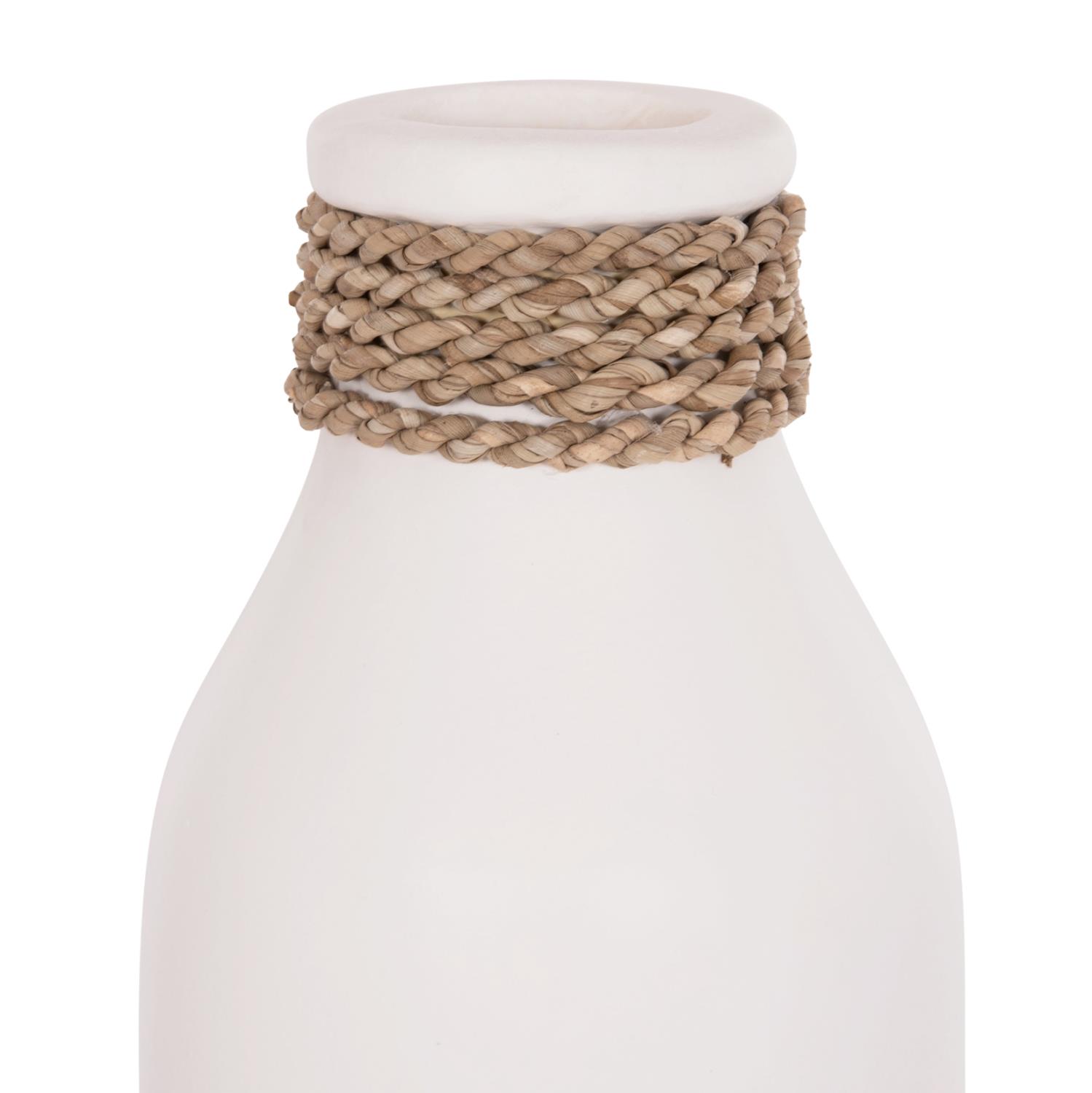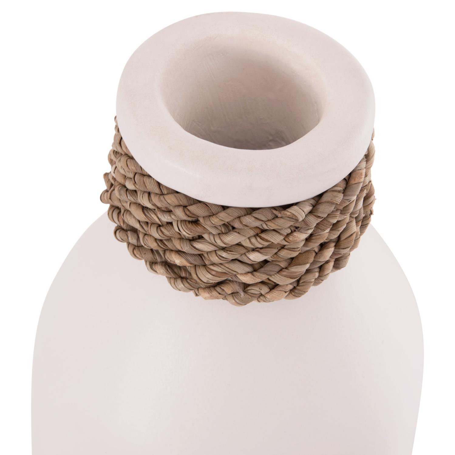 The CAMMER handmade decorative table bottle-shaped vase is made entirely of terracotta in WHITE color and features decorative rattan on the “neck” right below the rim. Ideal for a variety of spaces, both for the home and for professional spaces.