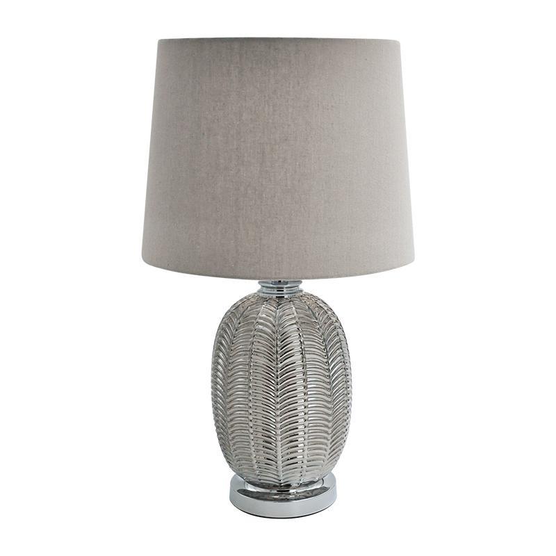 The 23042 table lamp combines elegance and modern design, offering light and style to any room. Its silver and white color creates a sense of luxury and warmth, making it perfect for living rooms, bedrooms, or even professional spaces. The glass frame, along with the fabric and metal lampshade, enhances its contemporary and timeless look.