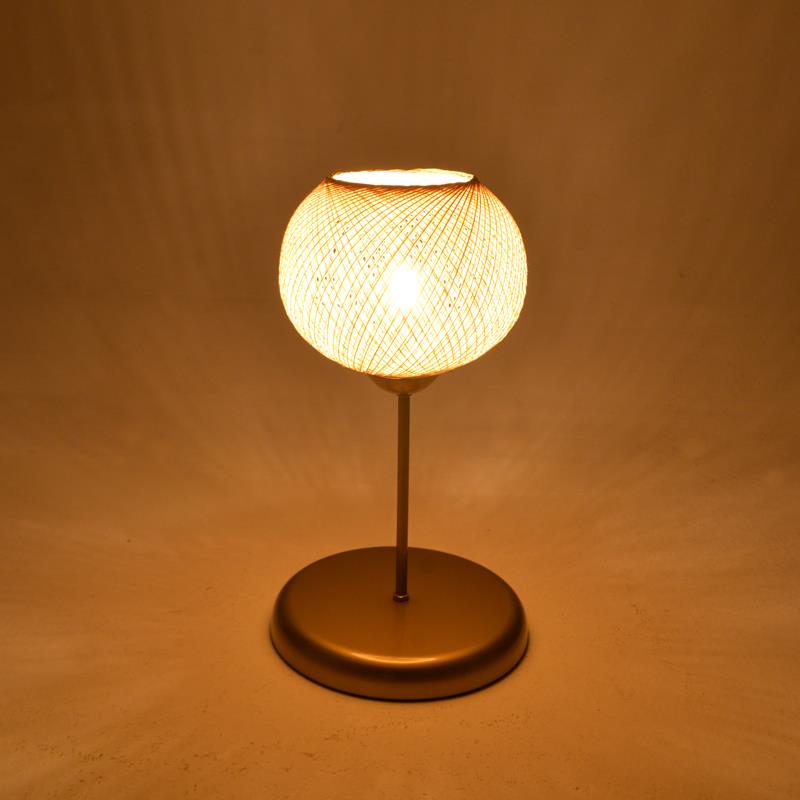 The combination of the minimalist gold base with the handmade spherical shade, crafted from woven PP, creates a stunning effect. When lit, the weave casts warm, playful patterns on the walls, offering a unique and relaxing atmosphere.