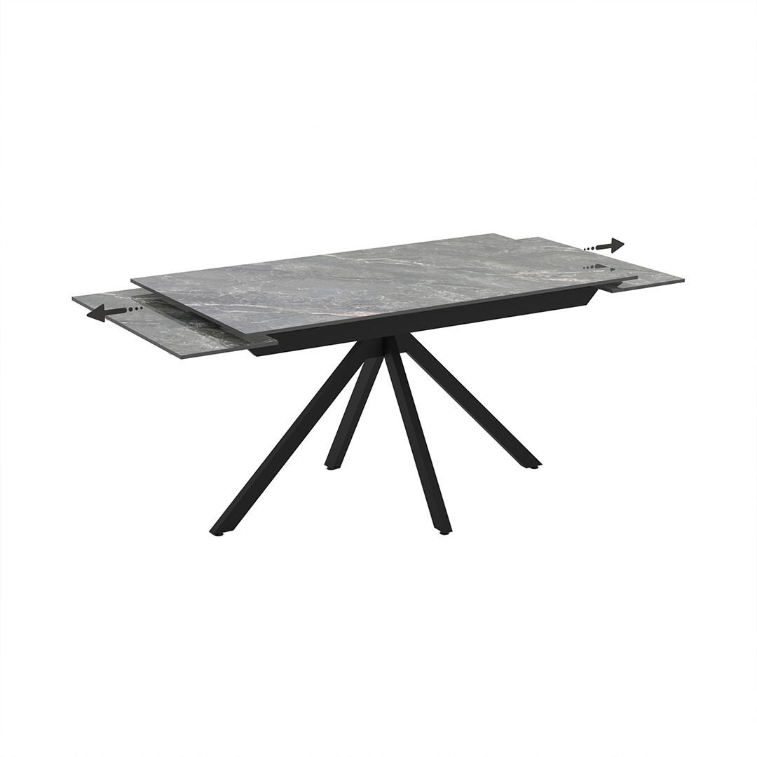 The metal frame in anthracite shade gives it a robust and modern look, while the adjustable plastic legs protect the floor from scratches and allow for perfect stability even on uneven surfaces. The table top is made of 11 mm thick ceramic material, known for its high resistance to heat, scratches and the wear and tear of daily use, while offering a sense of luxury.