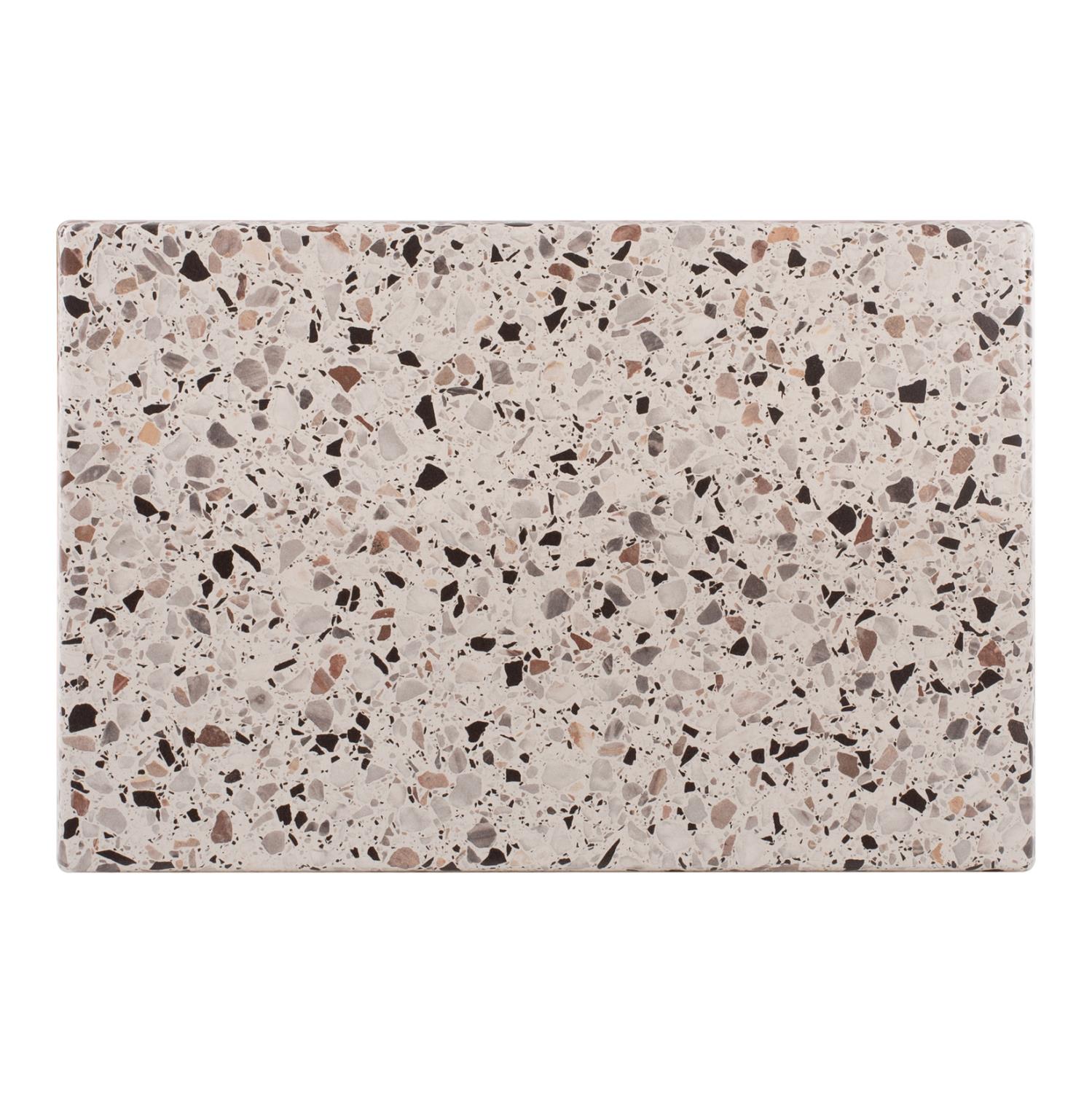 Professional rectangular oblong tabletop in TERRAZZO color scheme (this is like a mosaic), which is suitable for contact with food. In general, the material is environmentally friendly. It can be used in cafes, restaurants, and tourist accommodation, either indoors or outdoors.