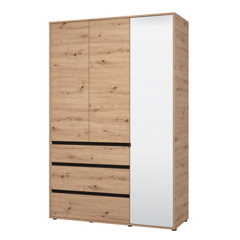 Wardrobe CORBETT 3K3F1O Three-leaf with Mirror & 3 Drawers Artisan oak – Matte black 138x55x211cm.