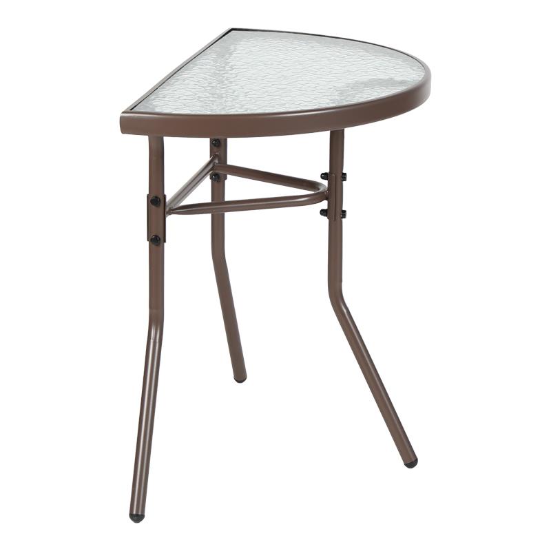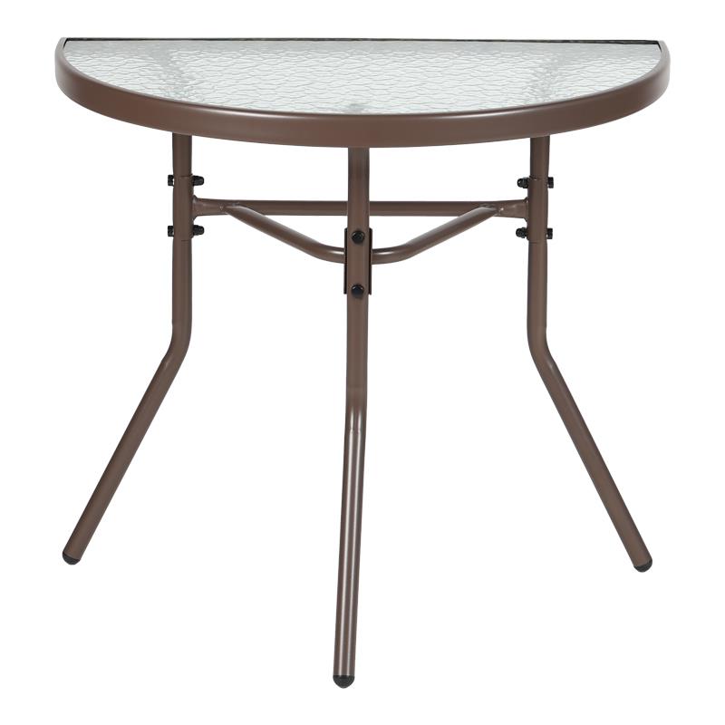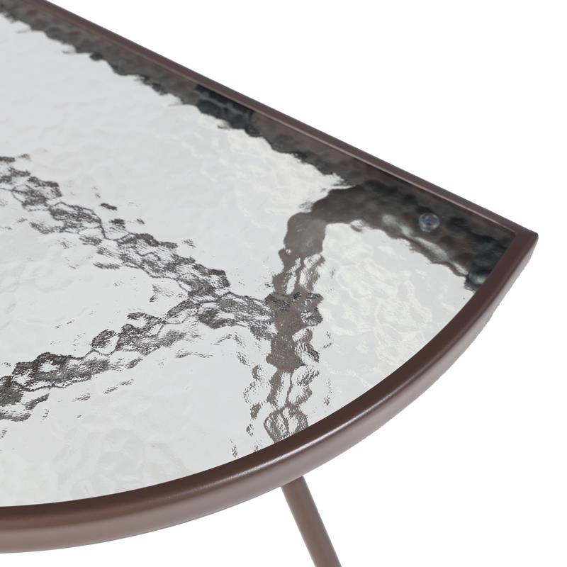 Turn your small balcony into your favorite relaxation corner! The Bion semicircular table is the perfect combination of style and functionality. Its smart design allows you to place it right against the wall, creating a welcoming corner for your morning coffee or afternoon drink, without sacrificing valuable space. Its durable construction with a metal frame and glass surface makes it ideal for all year round.