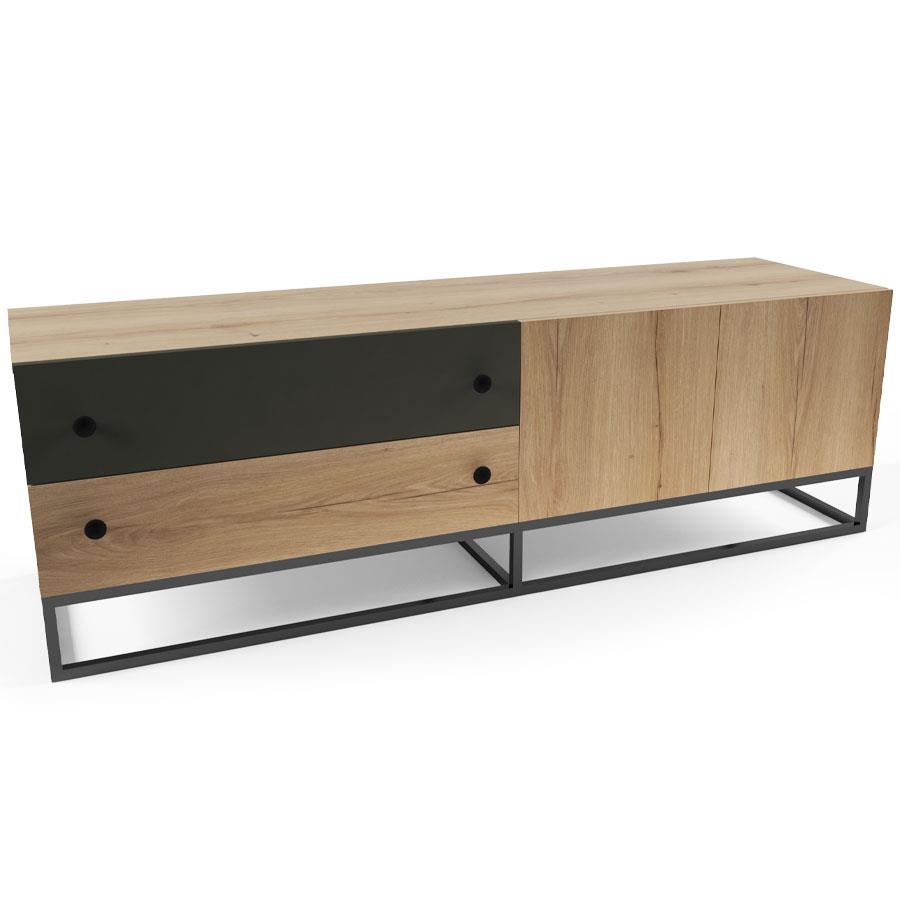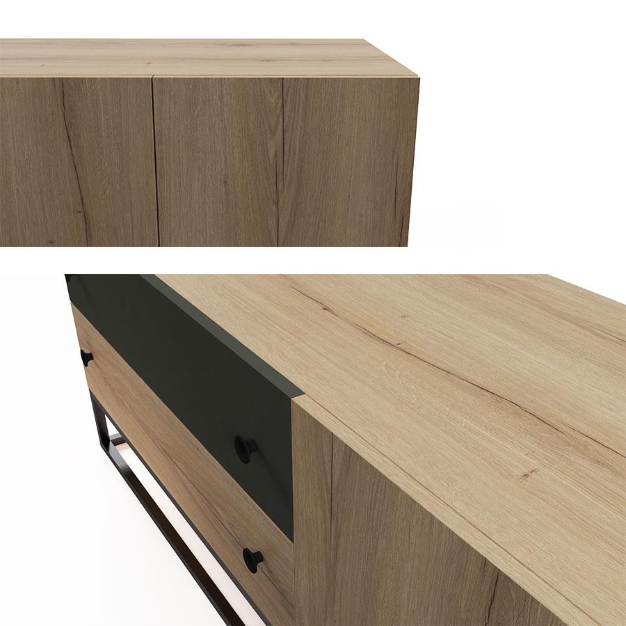 The CUBO TV Stand is the perfect addition to your living room, combining elegance, functionality, and durability. Featuring two swing doors and two spacious drawers – one in a stylish anthracite color – it offers ample storage space to keep your essentials organized and easily accessible.