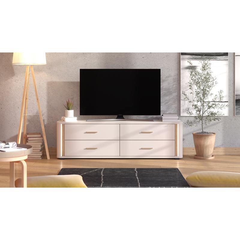 The York 4F TV cabinet combines style and functionality, offering an elegant and practical solution for your space. Made of 25mm chipboard, it ensures durability and long-lasting use. It features four spacious storage drawers, ideal for storing small items, such as remote controls, accessories and personal belongings, offering an organized and tidy appearance to your space. The furniture also includes built-in lighting, which adds a modern and warm atmosphere to your space, highlighting the furniture and creating the ideal atmosphere when watching TV or in moments of relaxation.