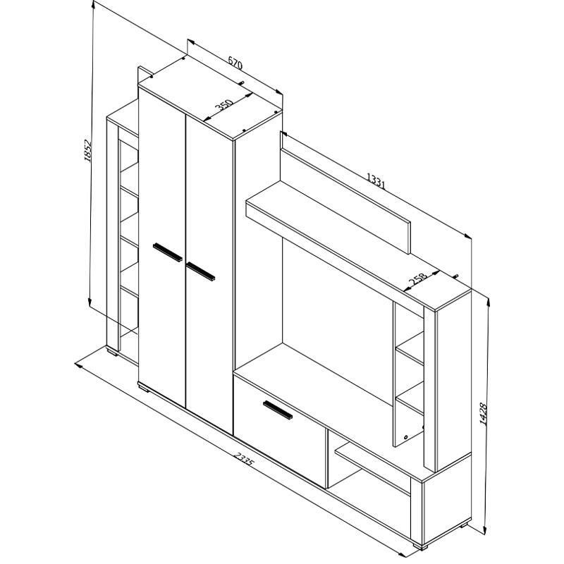 Κέντρο Ψυχαγωγίάς - Σύνθεση Talin Γκρί Δρύς - Λευκός Δρύς 233*35*185 εκ.