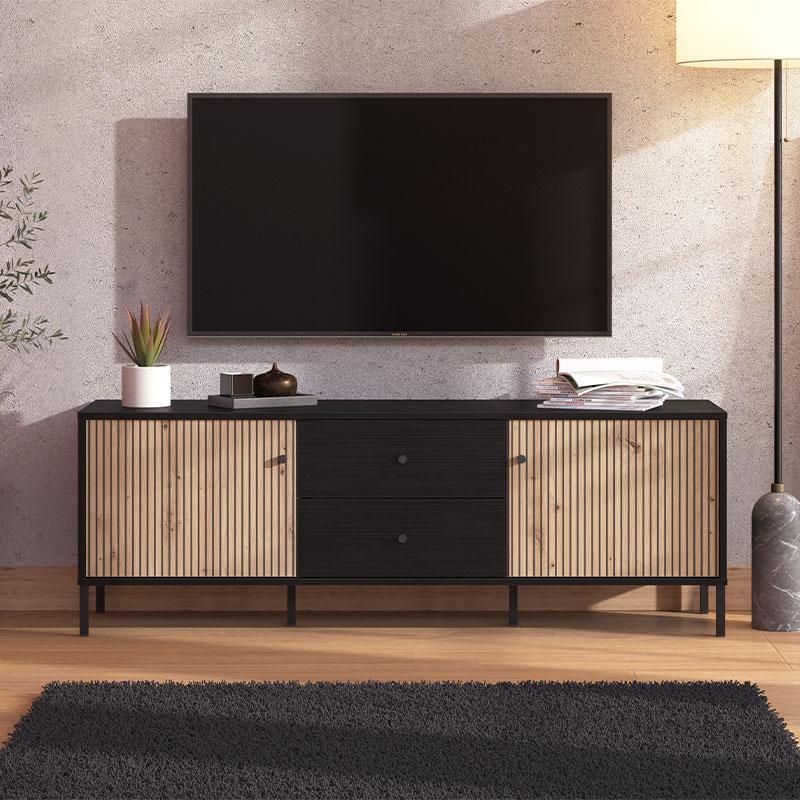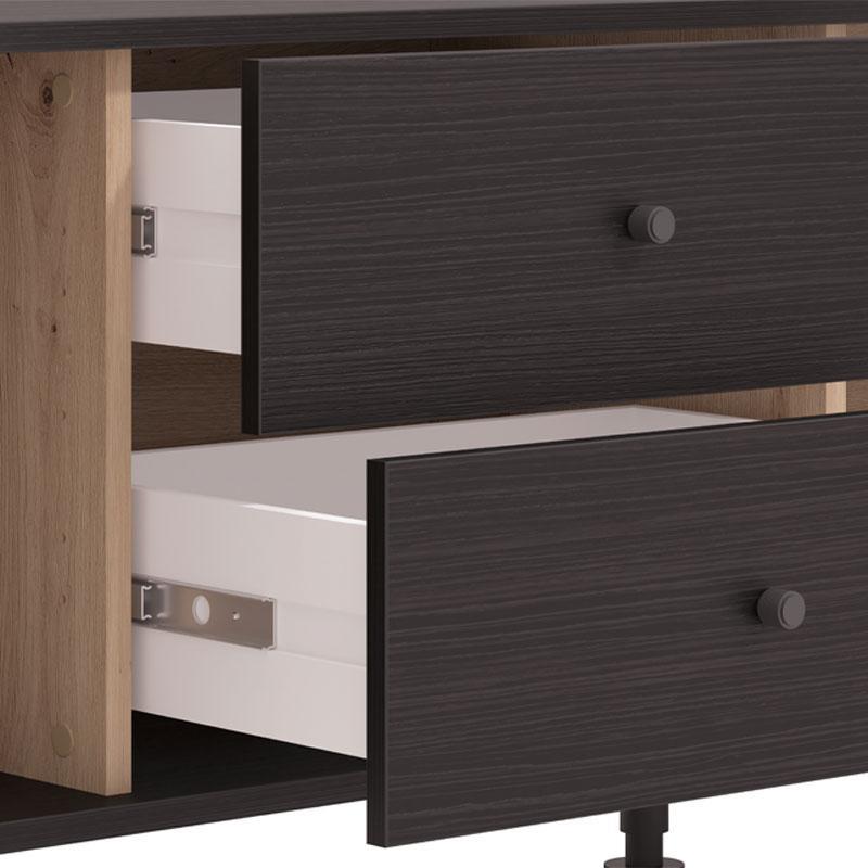 The Correze 3K2F2V is a functional and stylish TV stand, perfect for both modern and classic living rooms. The combination of black oak and artisan oak provides a sophisticated and timeless aesthetic, making it a standout piece in your home.