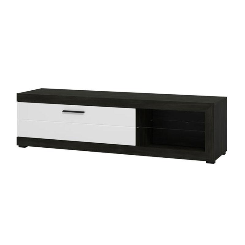 The Remo is a stylish and modern TV stand, perfect for any contemporary living space. The combination of timeless black with a white high gloss finish creates a luxurious and elegant look, adding a touch of sophistication to your home.