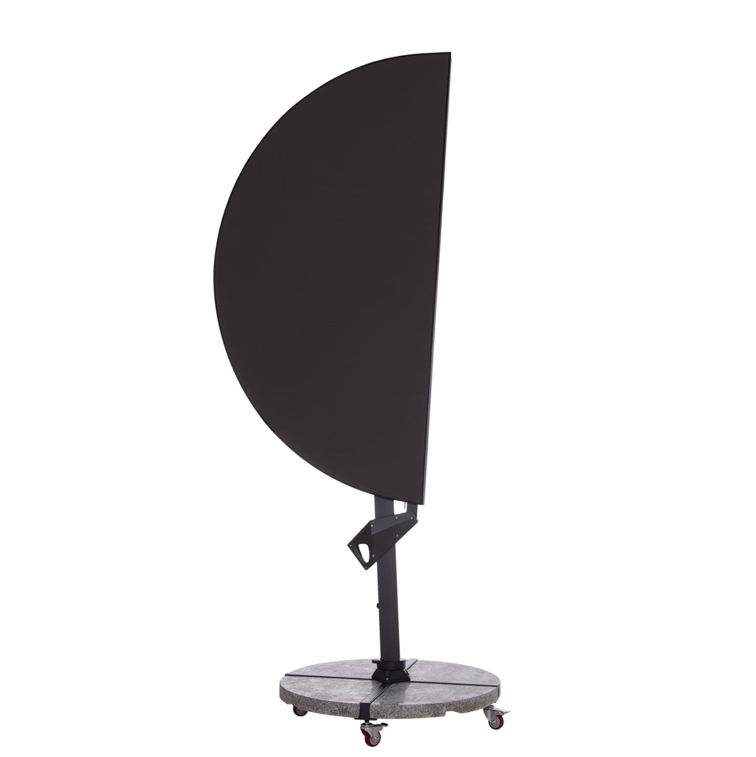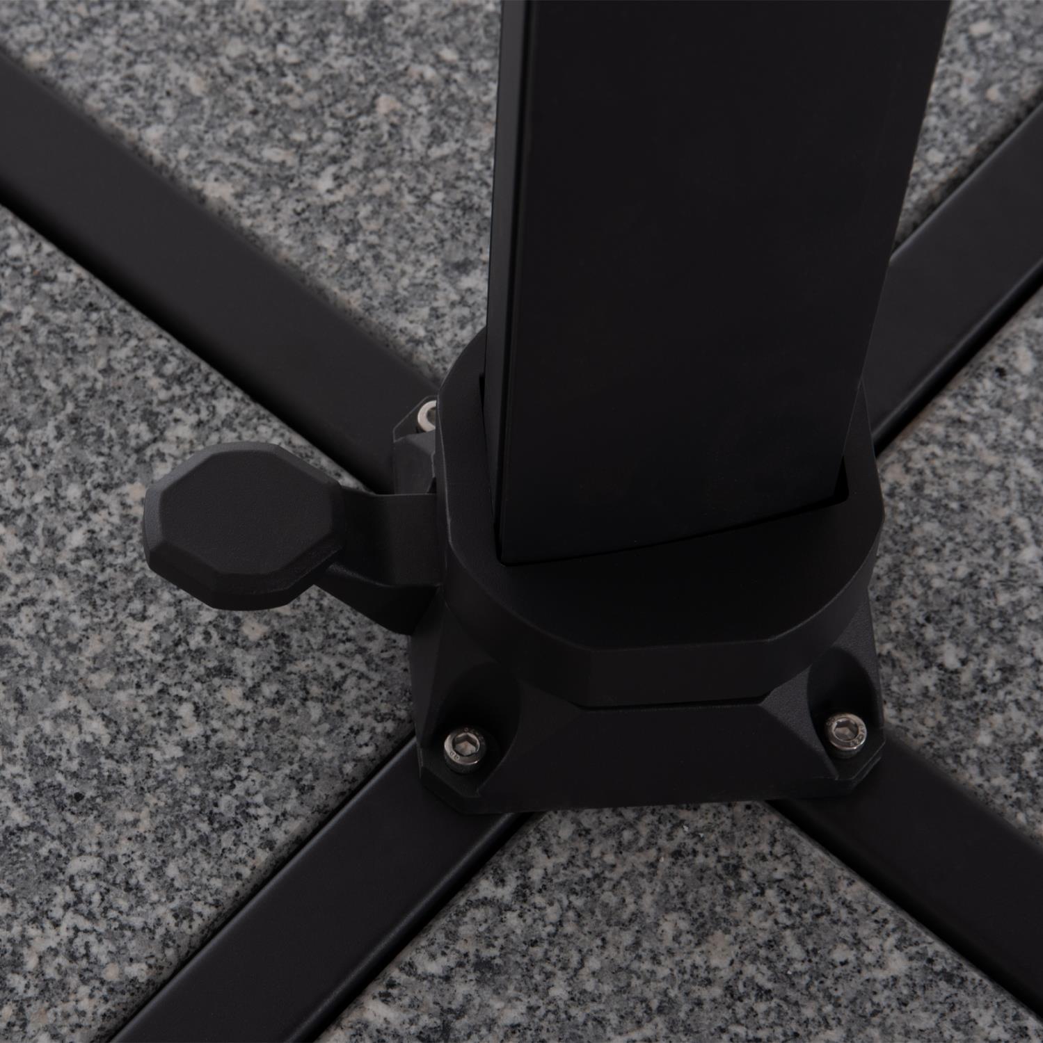 The 120kg base made of natural granite, divided into four sections within a cross-shaped frame, offers absolute stability, while the galvanized steel wheels allow the umbrella to be easily moved anywhere you like. All parts are painted in an elegant PENCIL GREY, creating a modern and discreet aesthetic.
