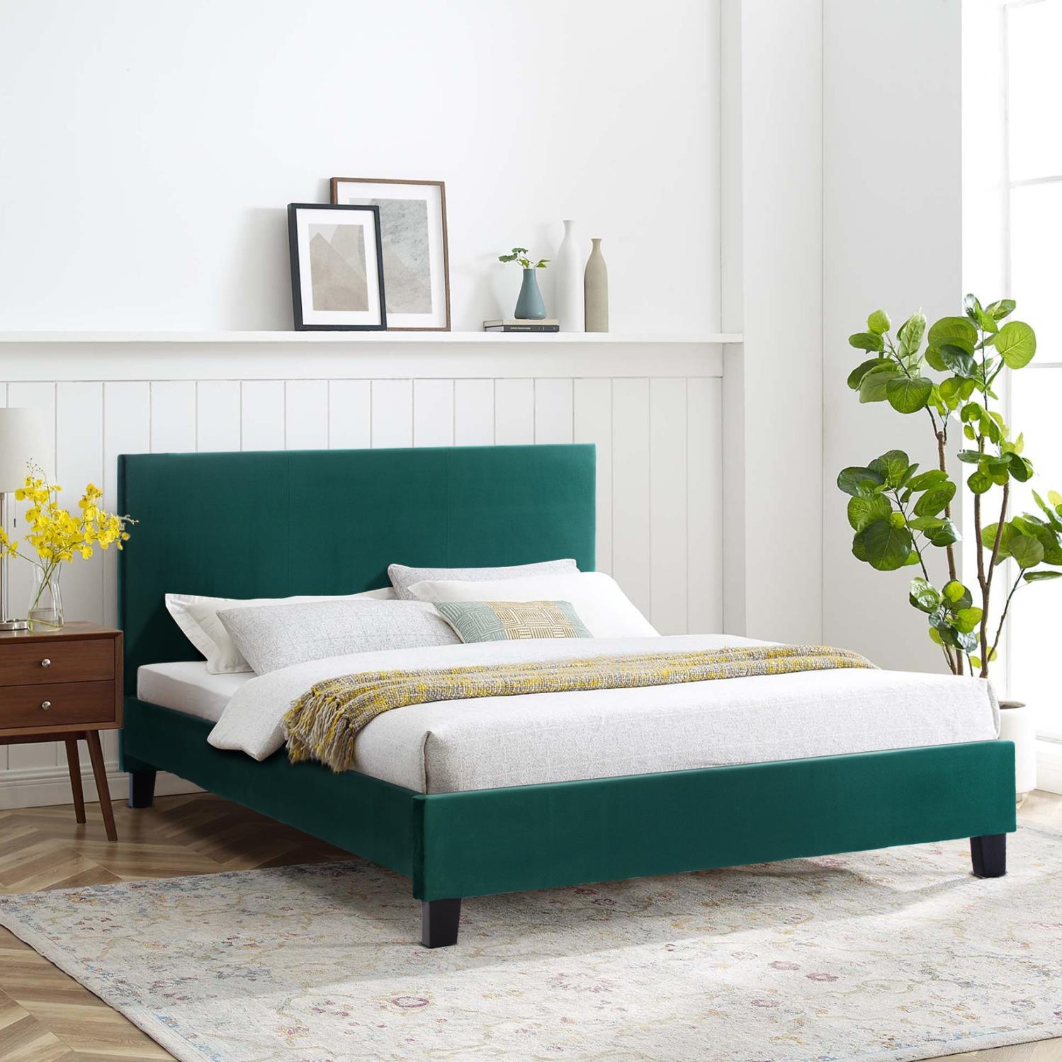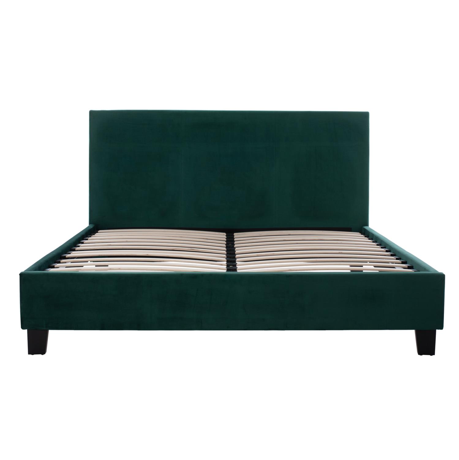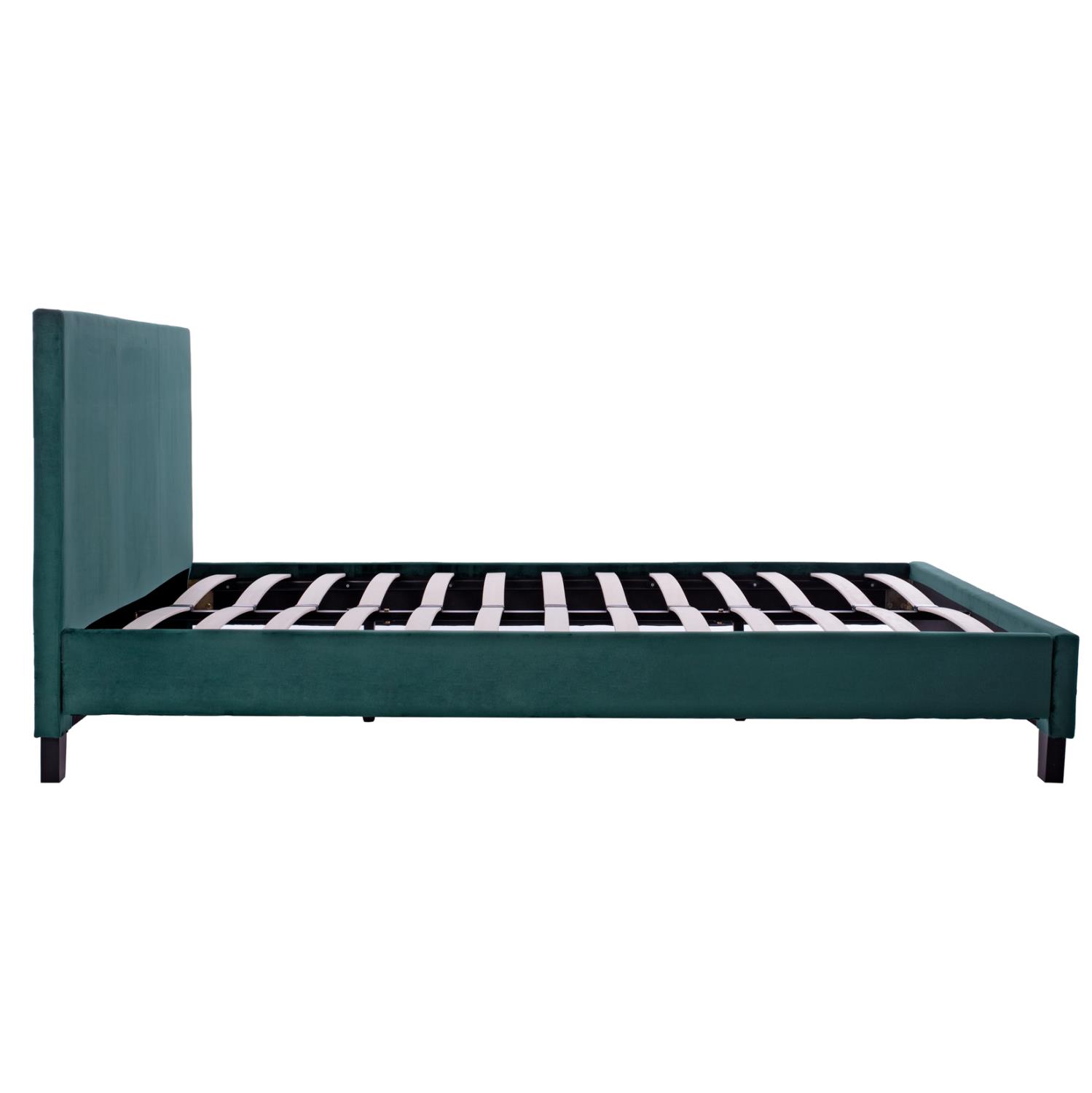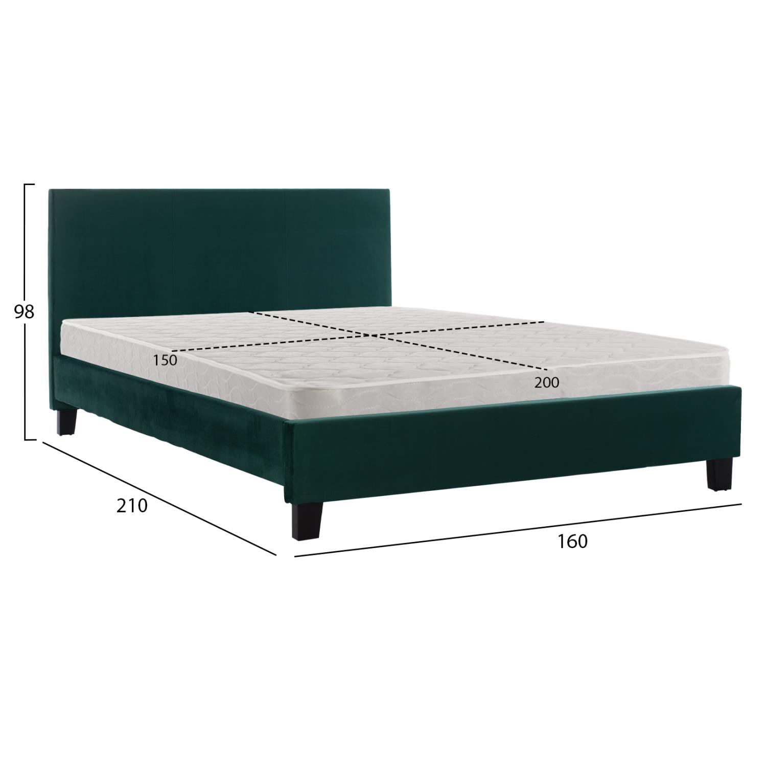 The BECCA double bed is upholstered with beautiful velvet fabric in CYPRESS GREEN color. The mattress that accompanies the bed is placed on two rows of anatomical slats, is double-sided and it is made with continuous spring technology. The legs are relatively tall and made of polypropylene in black color.