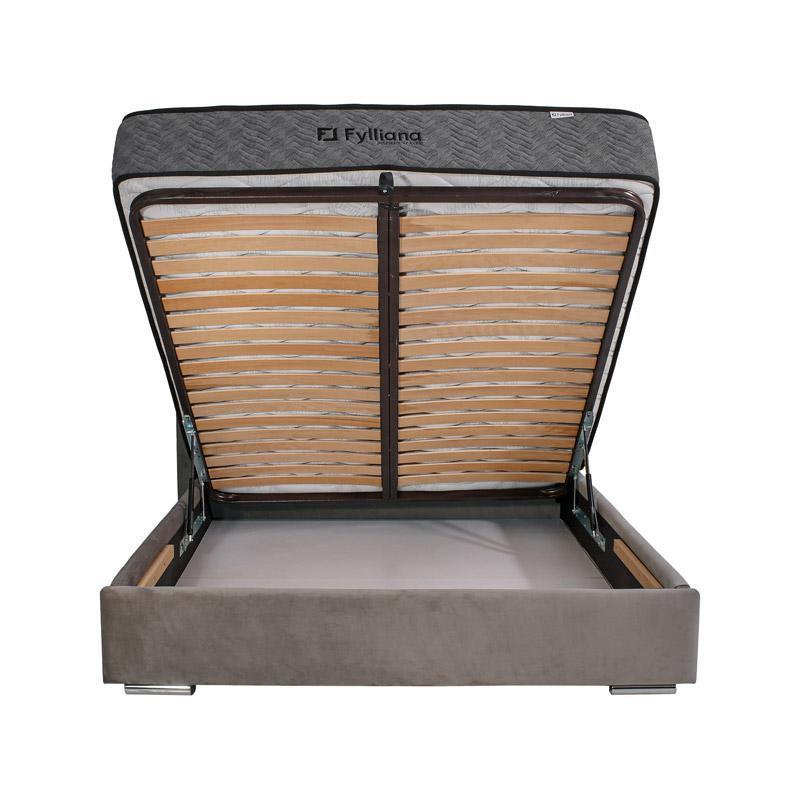 Under the mattress, there is a spacious storage space, ideal for blankets, duvets, seasonal clothes or anything you need to store away from everyday view. Opening is easy and safe, thanks to the reinforced lifting mechanism, which ensures comfortable and quiet use.