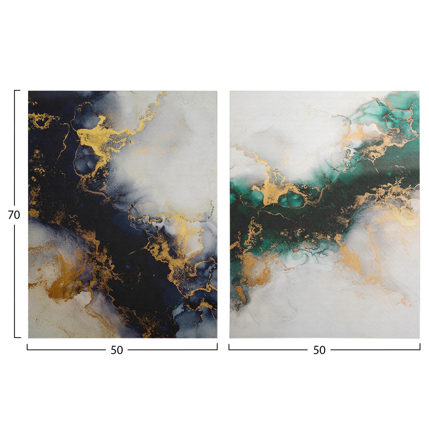 Wall paintings transform the way we perceive space. So, decorate your space with the new GOBI wall painting series! These colorful paintings (2pcs) depict 2 similar abstract images (blue-green) in different main coloring and have been implemented on printed canvas in a wooden frame, and you can place them either together or in different places separately!