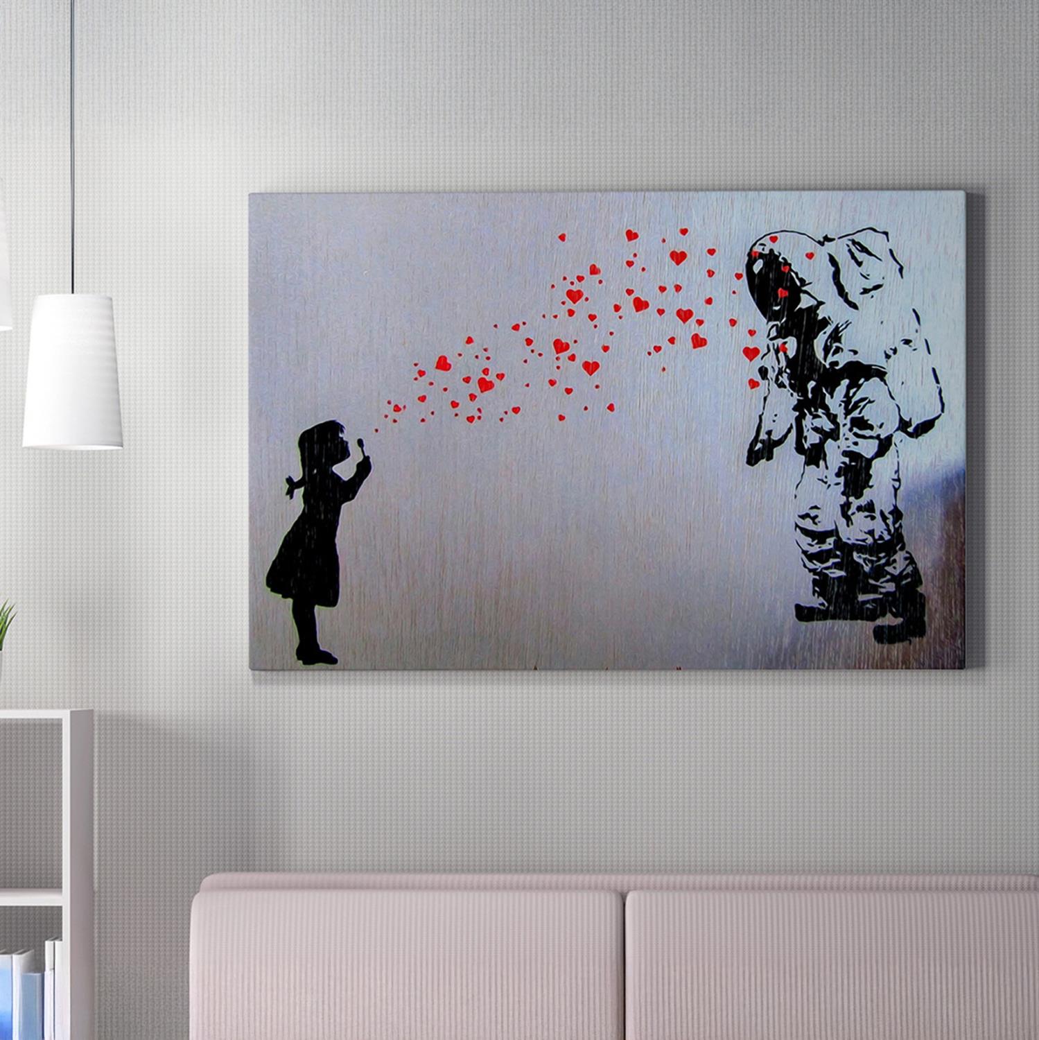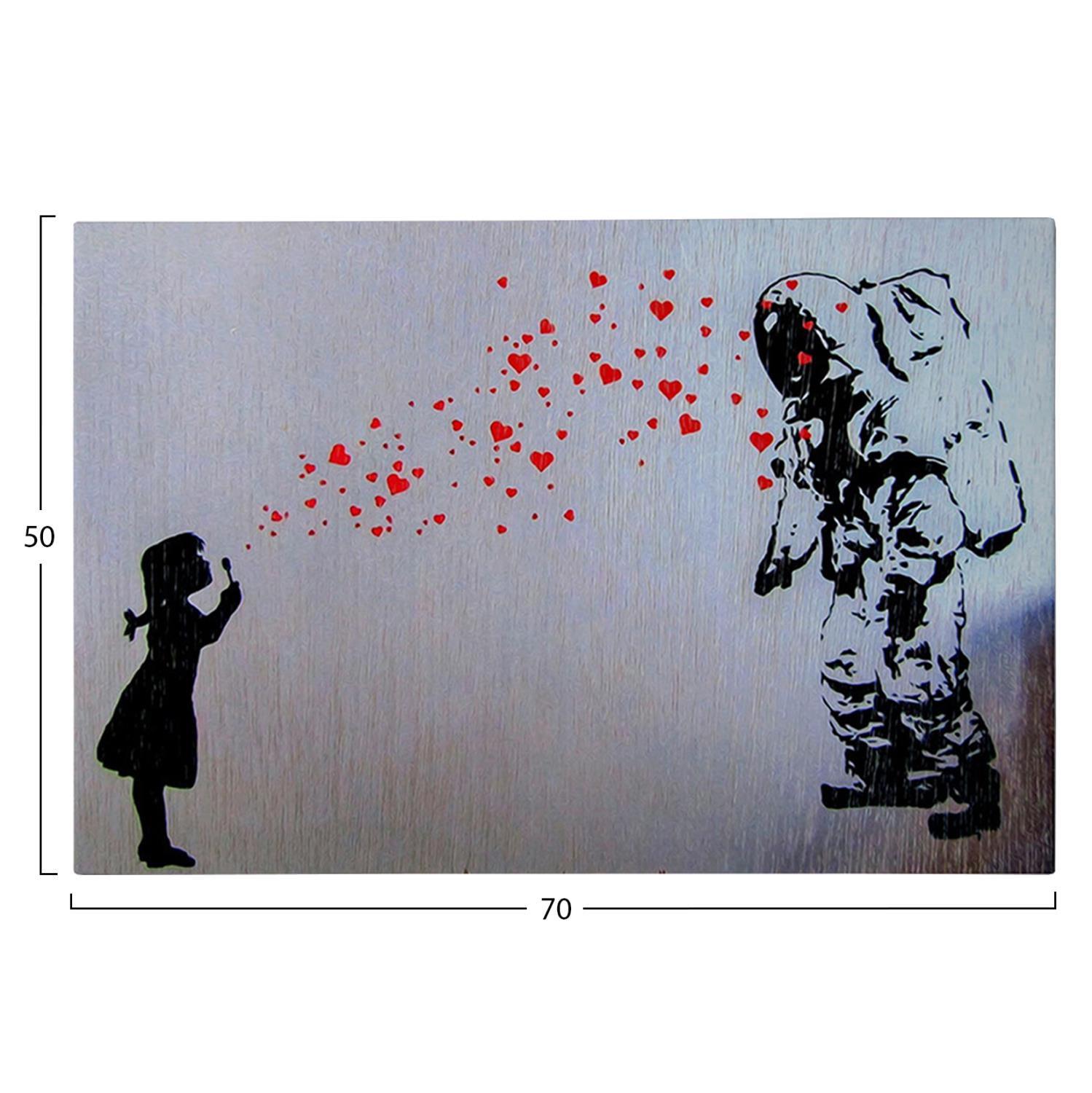 A wall painting transforms the way we perceive space. So, decorate your space with the new GOBI wall painting series! This black and white painting depicting a girl sending red hearts to an astronaut, is implemented on digitally printed canvas (50% cotton-50% polyester) in a wooden frame.
