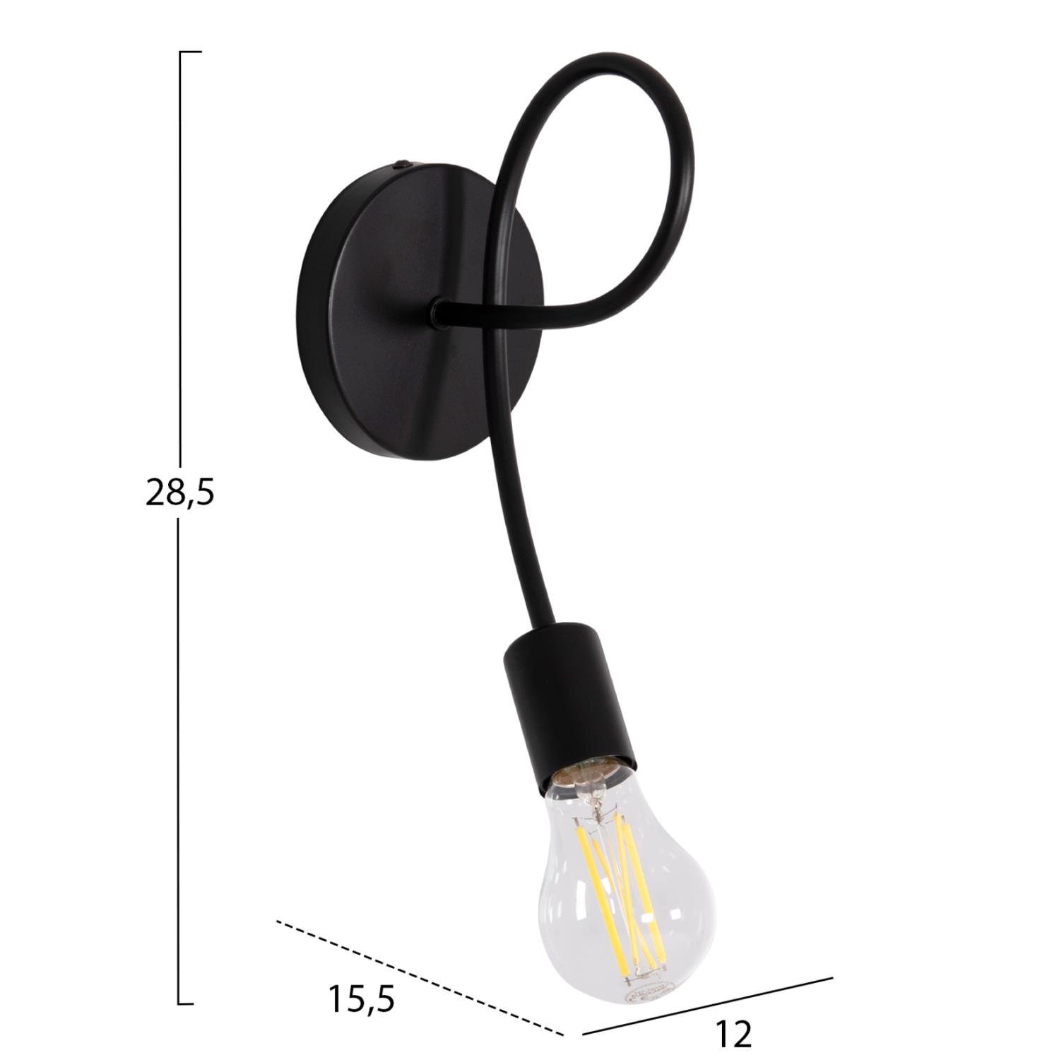 The FRIDRIK wall sconce is a simple proposition, with a BLACK metal base and a curved arm that holds the lamp without a shade.