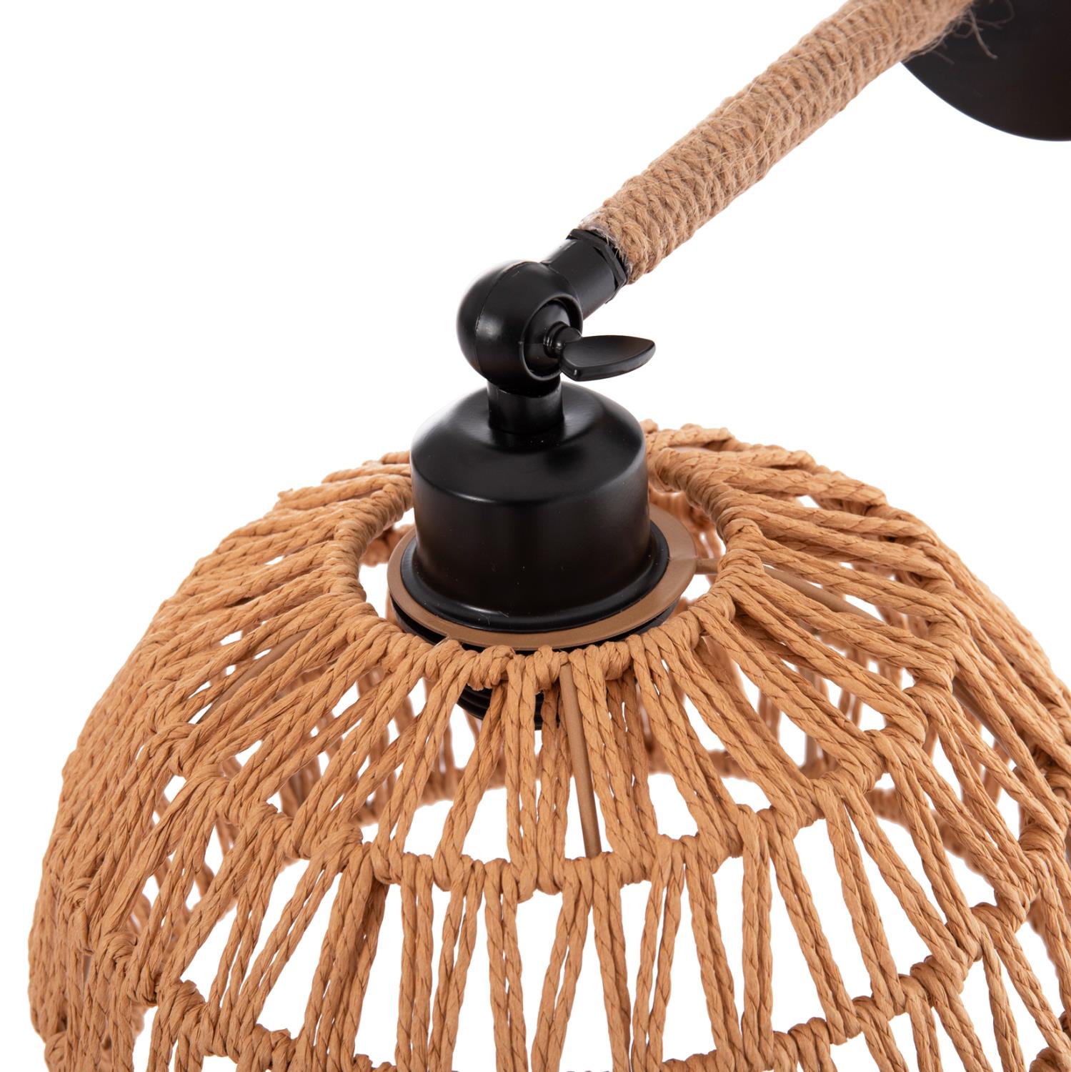 The wall sconce GLIDE is a beautiful proposal but with references to the classic hanging design. The lamp's cap is hemispherical with hemp rope lining, that lets the light diffuse all around, creating a unique atmosphere, while the “arm” is adjustable via a rotary wing nut (screw).