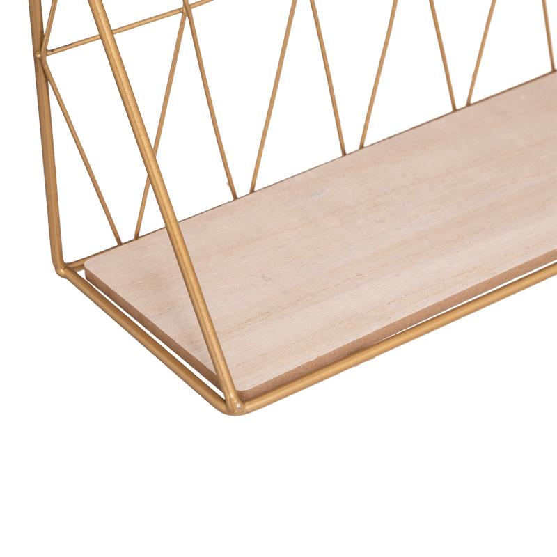 Designed with a durable metal frame in gold and a warm wooden surface in a natural tone, it seamlessly blends functionality with style.