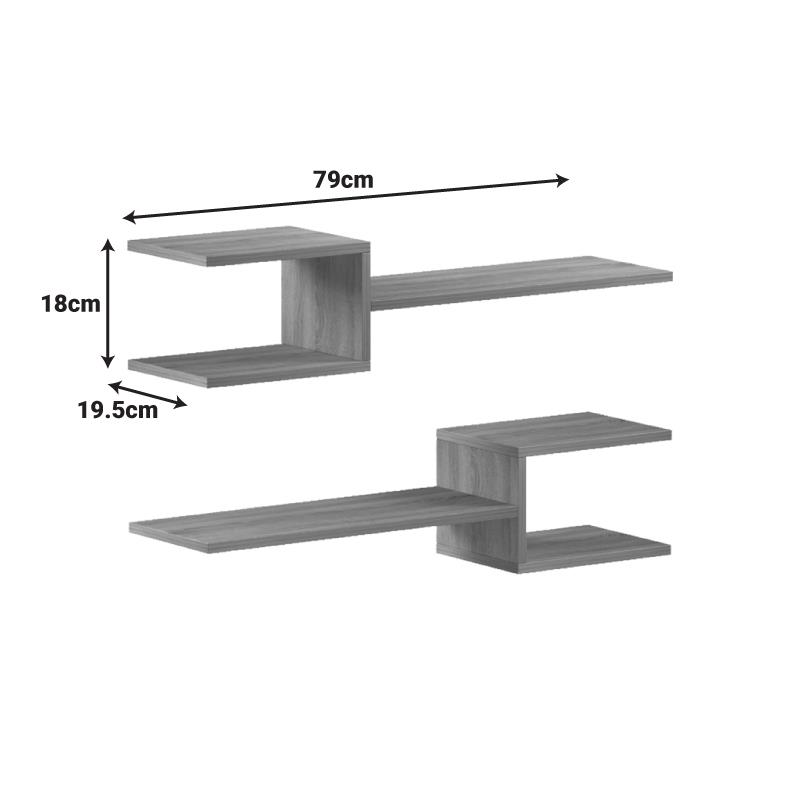 • Modern, geometric design with alternating open and closed sections. The layout allows the shelves to be placed parallel, opposite, or in a stepped arrangement, giving the impression that they "lock" together.