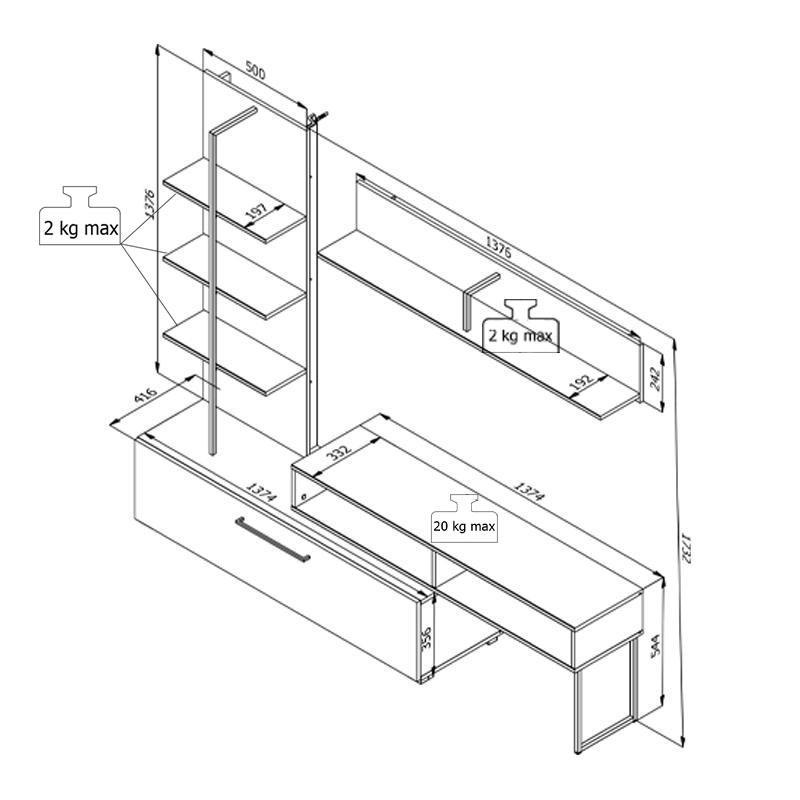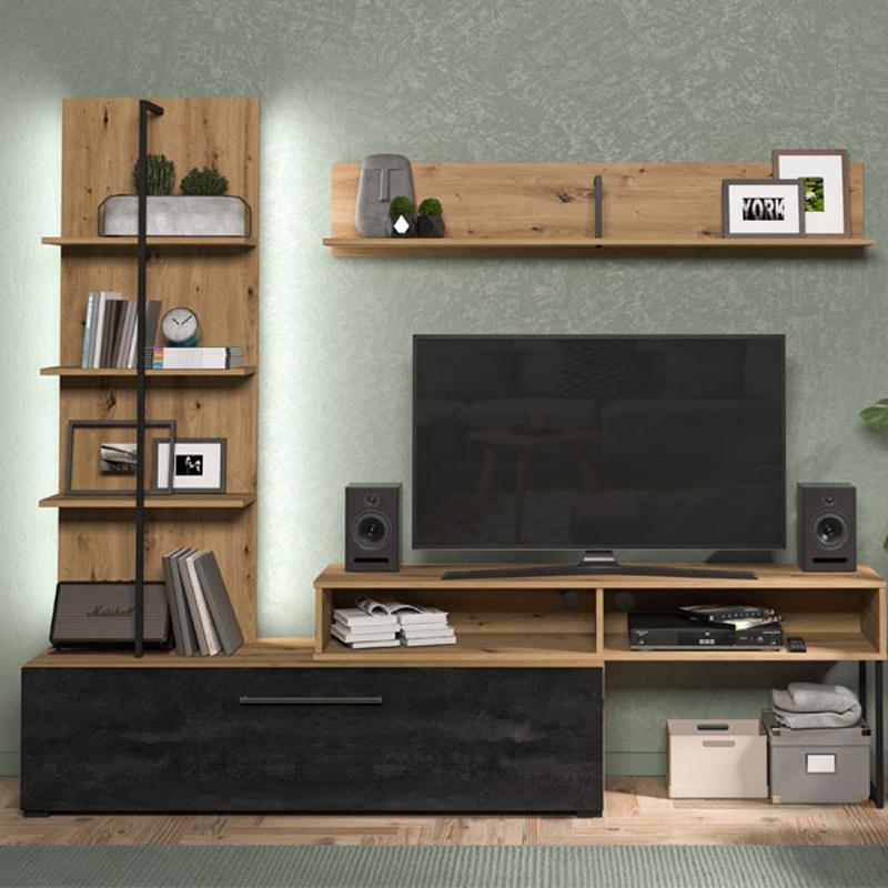 The stand is available in an elegant combination of Artisan Oak and Carbon, which adds timelessness and modern aesthetics. Its flexible dimensions make it ideal for different types of spaces, while the ability to increase the width of the TV stand allows you to adapt the layout to your own needs.