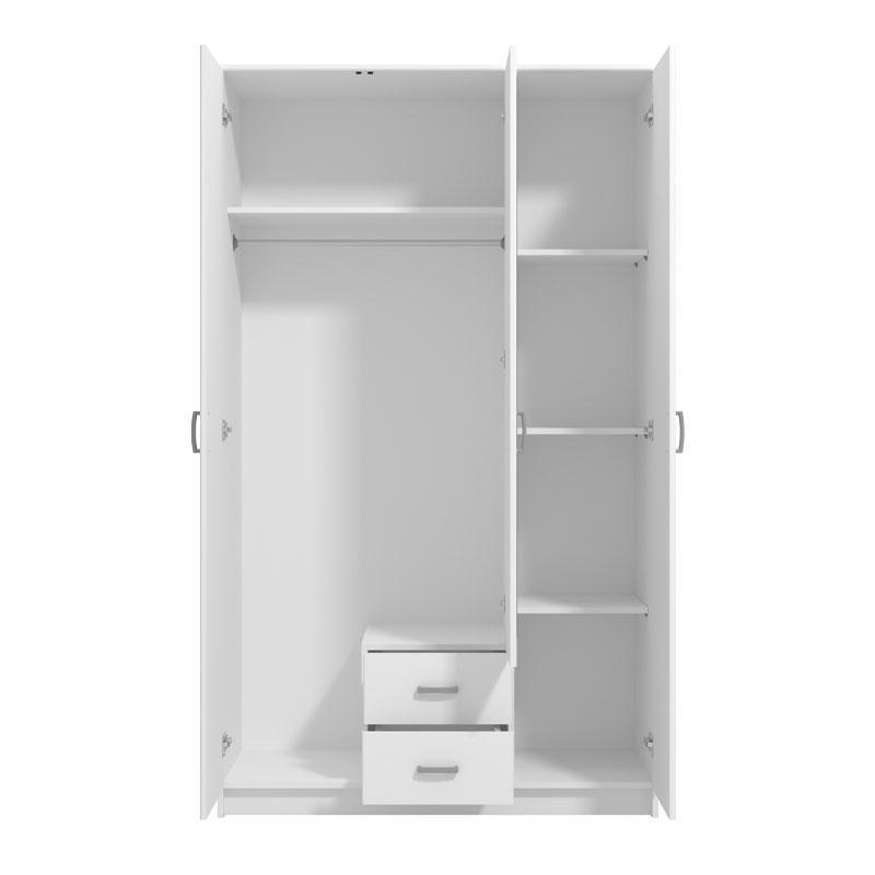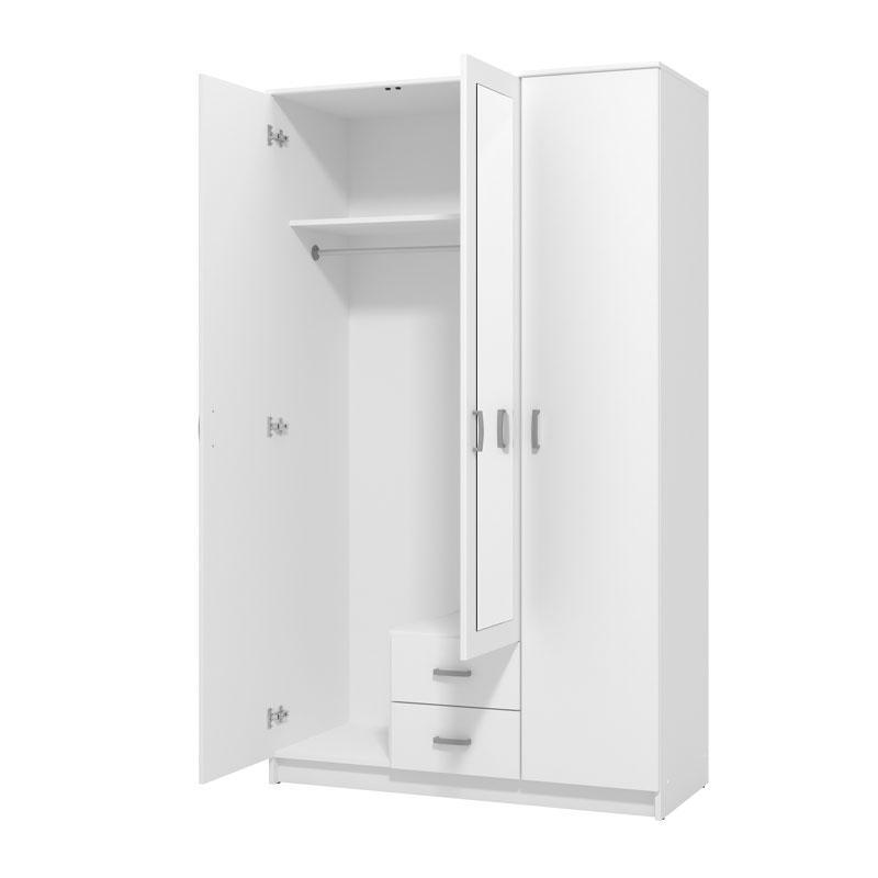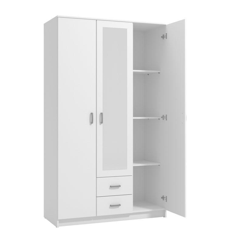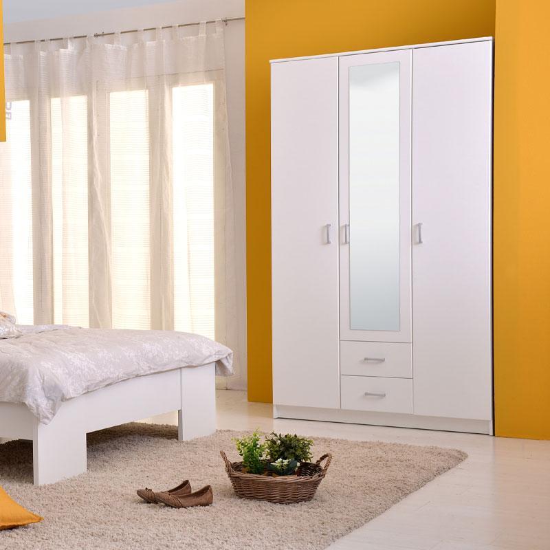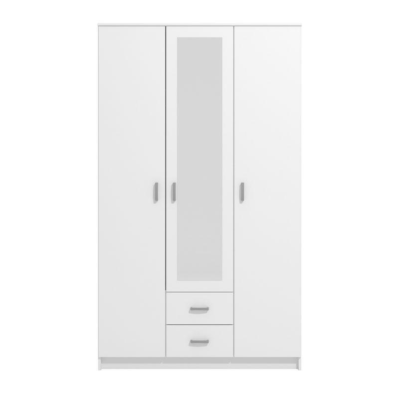 The White color of the Hana three-door wardrobe offers a renewed and bright mood to the space, while the plastic gray handle with aluminum corners gives a modern and sophisticated feel. With its functional dimensions, the Hana wardrobe can accommodate all your favorite clothes and accessories in an organized and efficient way.