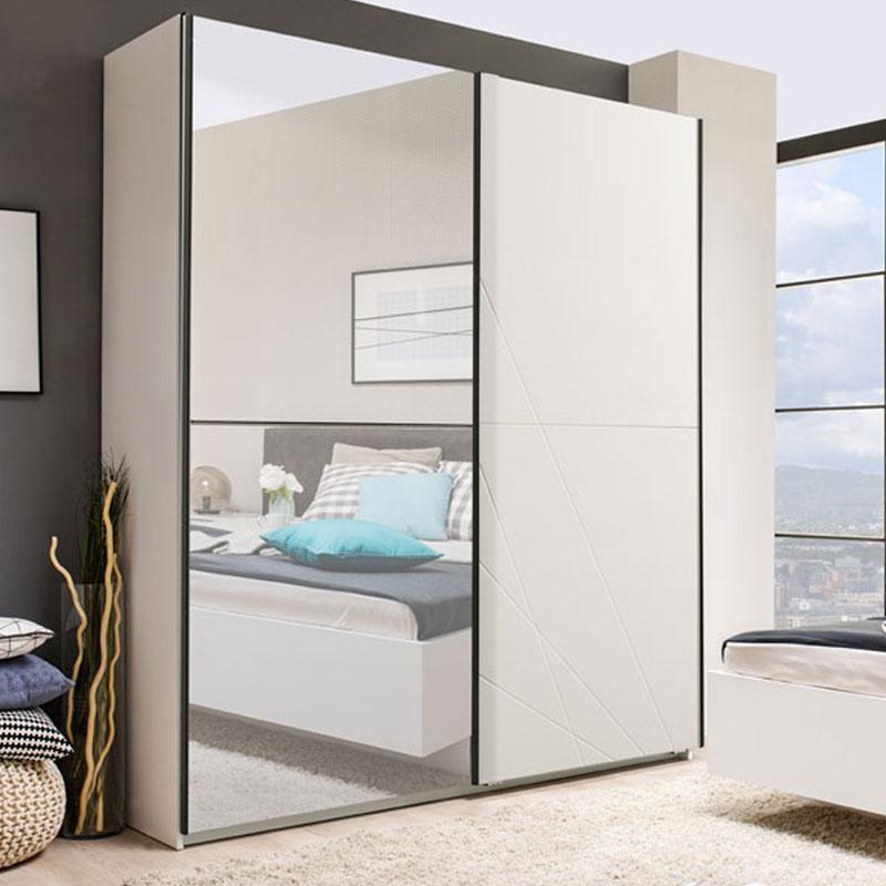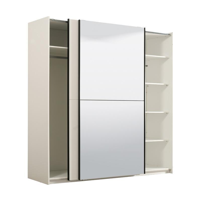 The Ksanti 220 bedroom sliding wardrobe is the ideal choice for anyone who wants to combine functionality and elegance in their space. Its white color not only adds brightness, but also a sense of purity and tranquility, creating an atmosphere that enhances harmony in the room