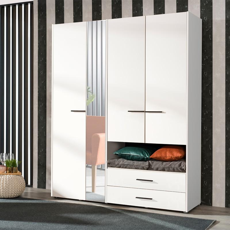The Leon wardrobe is the ideal choice for anyone looking for a combination of elegance and practicality in their space. Designed with an emphasis on functionality and ergonomics, this four-door wardrobe can meet the storage needs of a modern home, while ensuring an aesthetic renewal in the bedroom or any space of yours. The white color gives it freshness and brightness, creating a calm atmosphere that easily matches various decorative styles.
