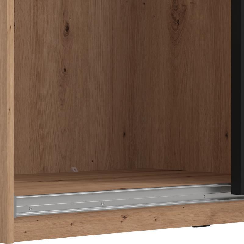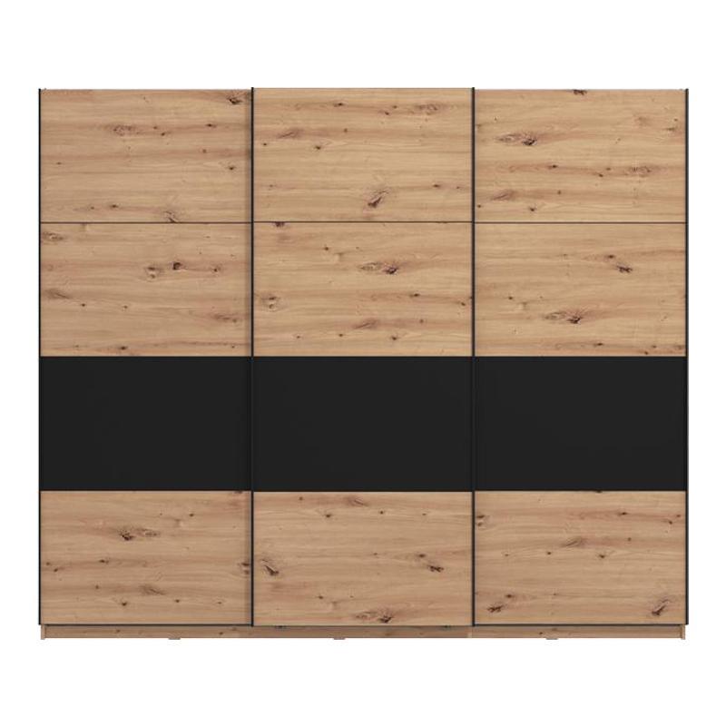 The Sardinia 270 sliding bedroom wardrobe from our collection is the ultimate solution for furnishing your bedroom, combining excellent design, lots of space and modern aesthetics. The artisan oak and black color combination offers a warm and modern feel, while at the same time creating a stylish, industrial atmosphere that fits perfectly into any modern home.