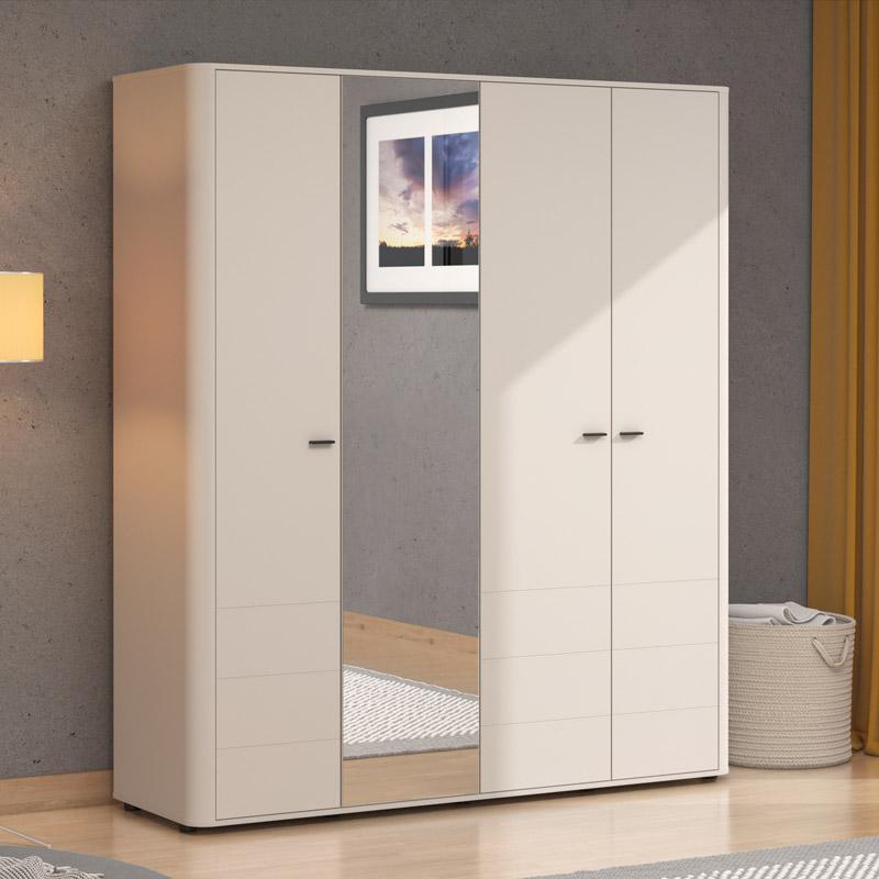 With four leaves, it offers ample storage space for clothes, shoes, linens and personal items, allowing for easy organization and tidying. The integrated mirror on the front is not only practical, but also decorative, creating the illusion of a larger and brighter space.