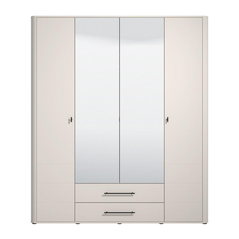 Wardrobe SERDICA 4K2F2O Four-leaf with Mirror and Drawers Cashmere 180x57x211cm