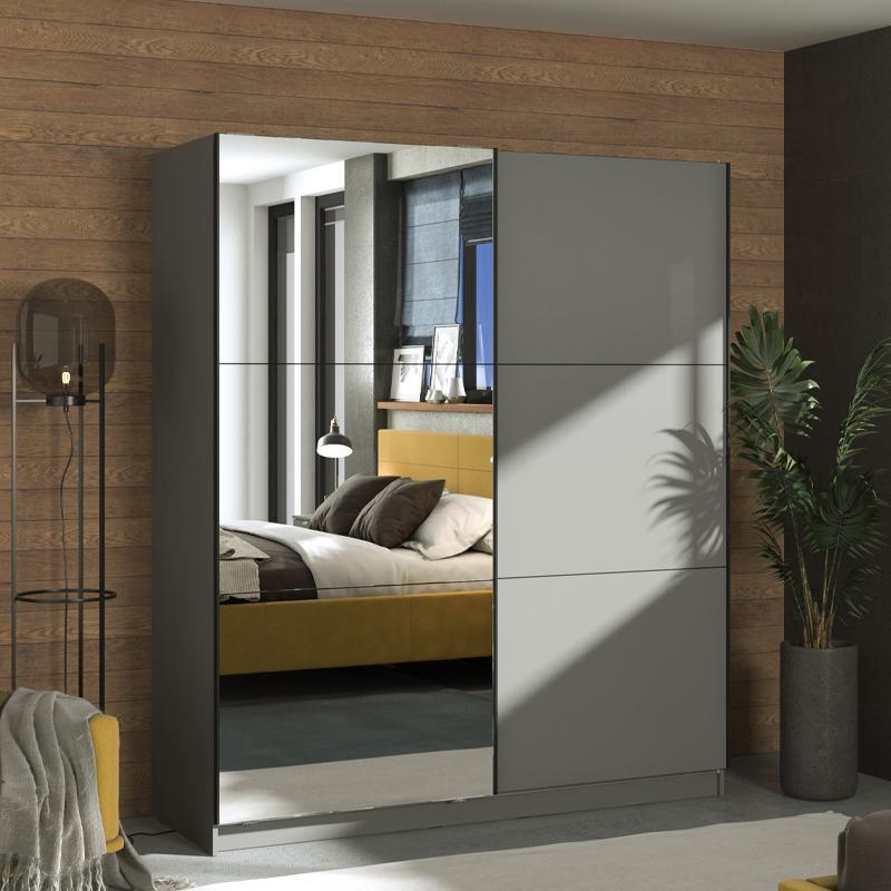 The SIERRA 180 sliding bedroom wardrobe with mirror combines functionality and aesthetics, offering the ultimate storage space for your bedroom. It offers a spacious and organized storage space with many storage solutions.
