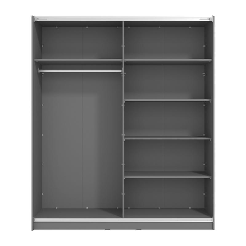 The coloring of the two-leaf SIERRA sliding wardrobe in graphite gray creates a sense of warmth and naturalness, and its construction of chipboard with certified E1 melamine coating ensures long-term durability and easy maintenance.