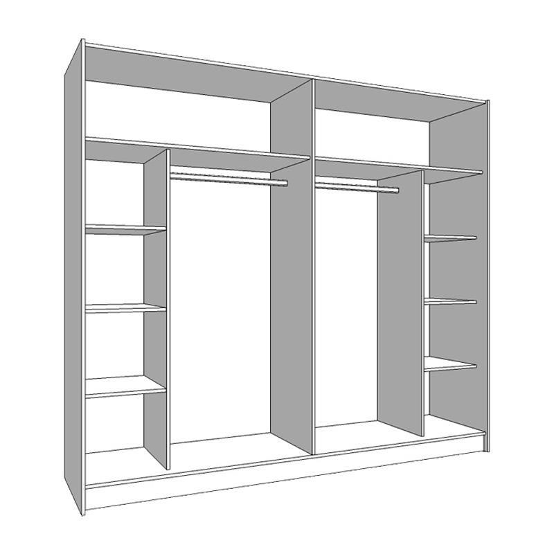 The SIERRA 240 sliding bedroom wardrobe combines functionality and aesthetics, offering the ultimate storage space for your bedroom. It offers a spacious and organized storage space with many storage solutions and with a similar design on both of its leaves.