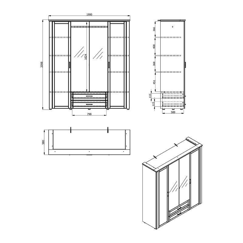 In addition, its special element, the mirror placed on the 2 central doors of the wardrobe, adds depth and dimension to the space.