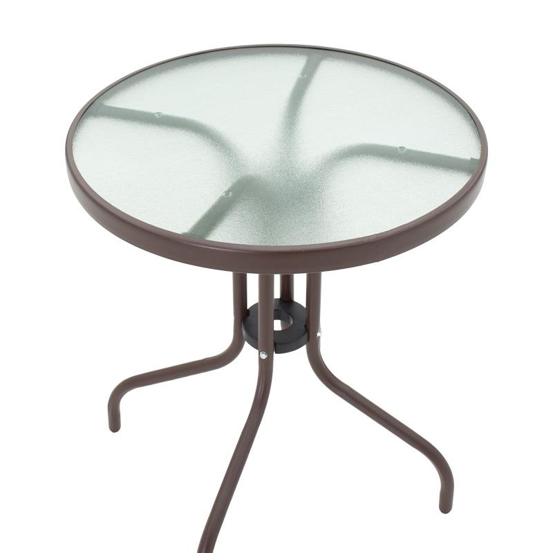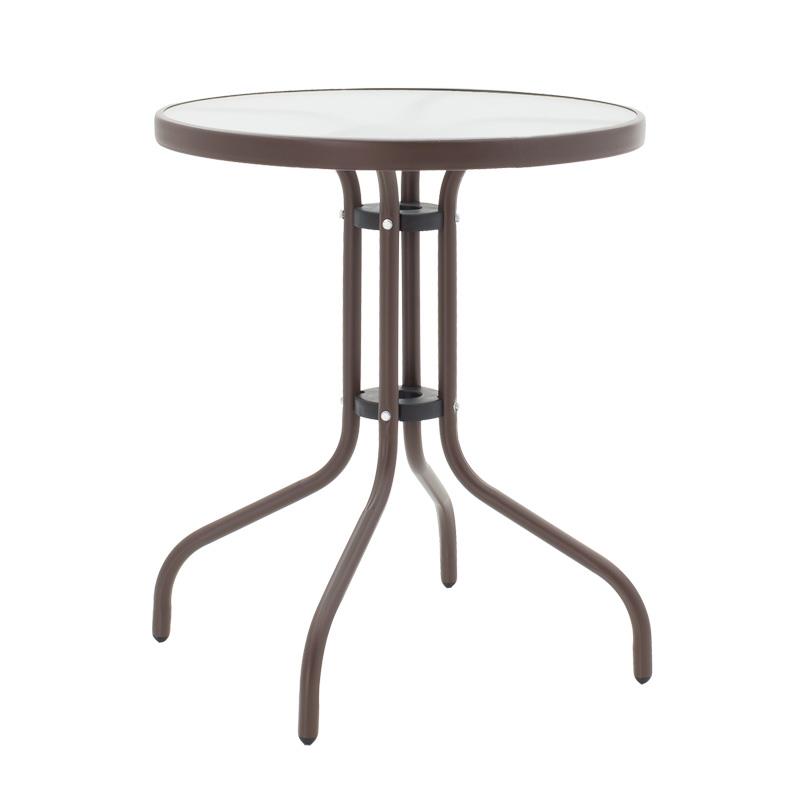 Outdoor dining table Watson-Sussie brown metal – glass Φ60×70 cm