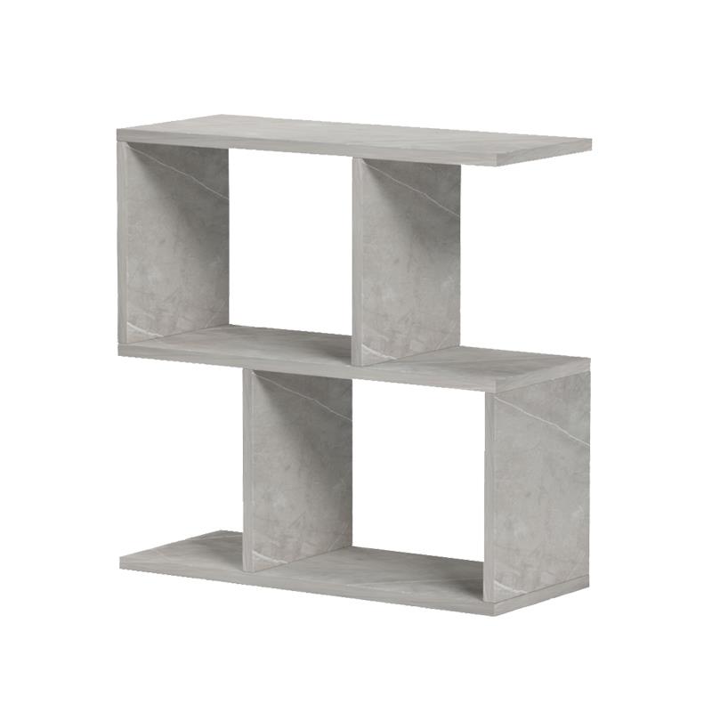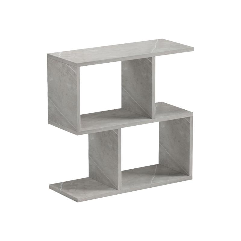 The Wesmol side table - bookcase in gray is the epitome of modern industrial design. The marble-look surface in gray adds prestige and an edgy aesthetic to your space. It is a versatile piece of furniture that combines the practicality of a table with the organization of a bookcase, ideal for minimal and modern living rooms or offices.
