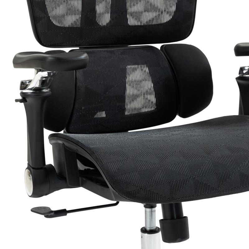 - Mesh Fabric: The breathable mesh fabric on the backrest allows air circulation and prevents body sweating. Available in black.