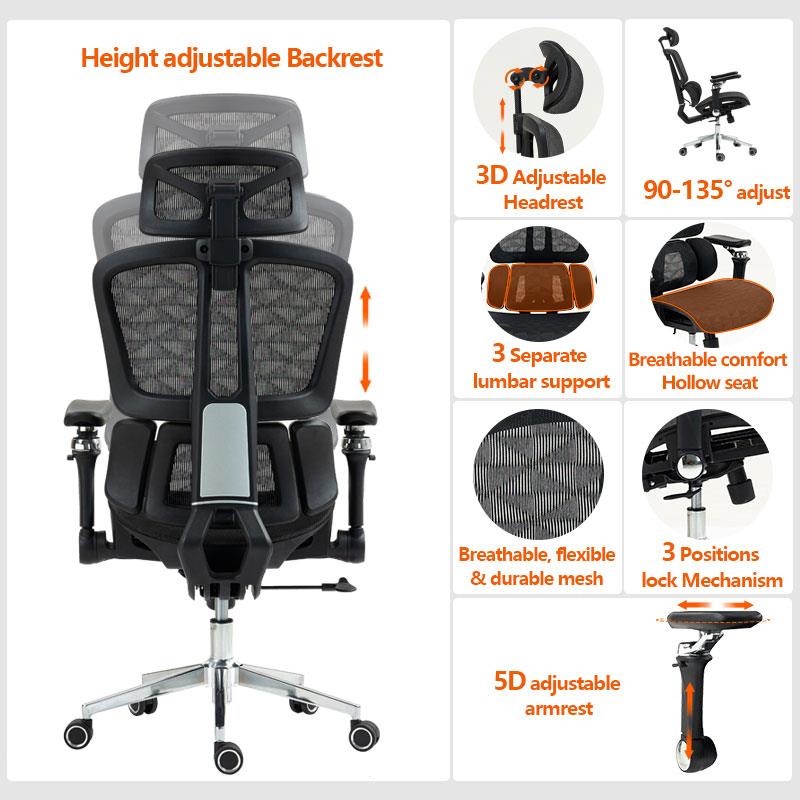 - 6D Adjustable Armrests: Adjustable in height, depth, width, and rotation for maximum wrist and arm comfort.