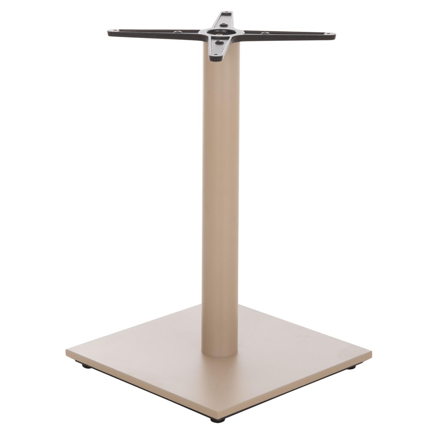 C438.25 is a base for tables, in MATTE CAPPUCCINO color. This stand is metal with a pillar resting on a heavy flat metal surface. The feature that makes this base particularly practical is that the tabletop you choose rests on a cross metal arrangement, so that it can accept both round and square tops. It also has height adjusters (regulators) at the bottom. An ideal proposal for combining with tabletops of almost any kind, such as werzalit, HPL, MDF, etc.