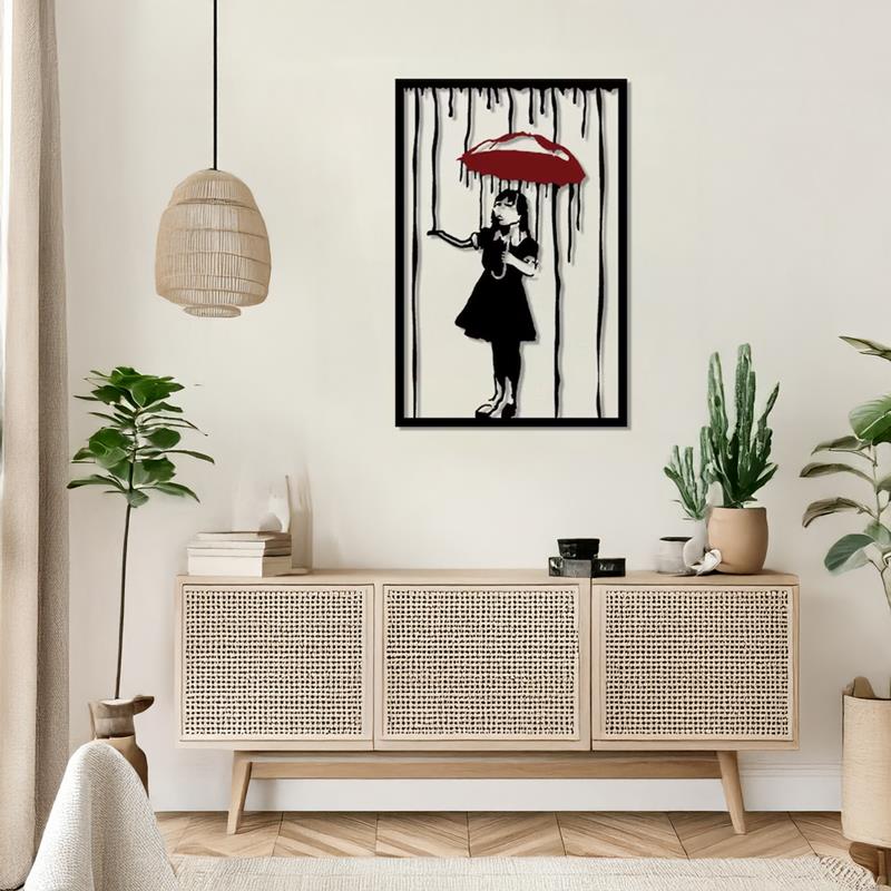 Φέρτε την ανατρεπτική αισθητική των δρόμων στο σπίτι σας με το διακοσμητικό Raino, ένα έργο που συνδυάζει τον minimal σχεδιασμό με την έντονη σημειολογία. Απεικονίζοντας ένα κορίτσι κάτω από μια ομπρέλα σε ένα βροχερό τοπίο, αυτό το κομμάτι αποτελεί μια ισχυρή καλλιτεχνική δήλωση για κάθε σύγχρονο τοίχο.