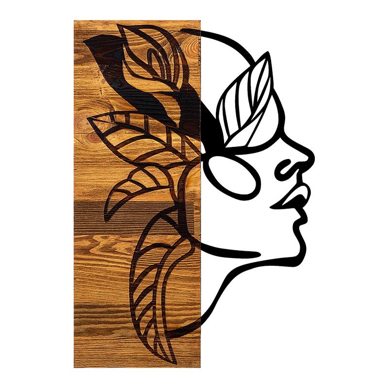 • Κατασκευασμένο από ξύλο πεύκου υψηλής ποιότητας (3mm) με την απεικόνιση του προσώπου να είναι κατασκευασμένη από μέταλλο σε μαύρο χρώμα (1,5mm).
