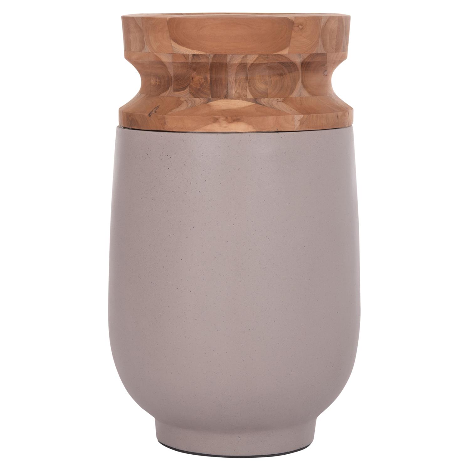 Διακοσμητικό Βάζο Δαπέδου LINTER C4662.05S Fiber Cement Γκρί Μάτ – Ξύλο Teak Φ34×60Υεκ.