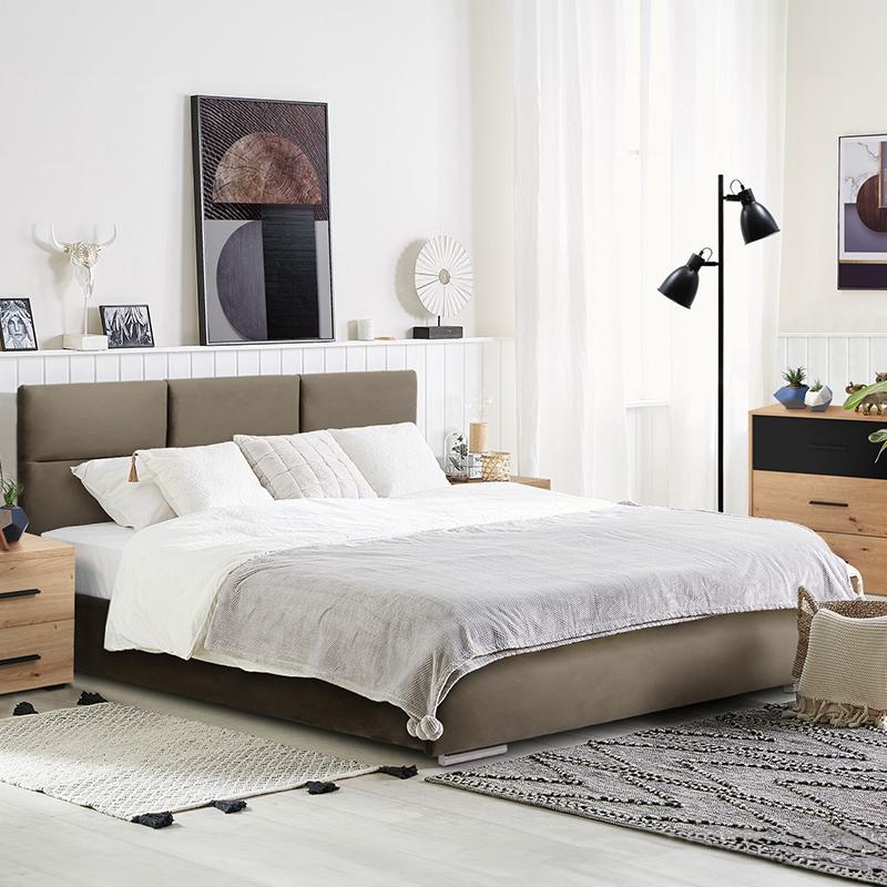 Το κρεβάτι διαθέτει κομψό και μοντέρνο σχεδιασμό που ταιριάζει σε κάθε διακόσμηση υπνοδωματίου. Οι καθαρές γραμμές και η προσεγμένη λεπτομέρεια προσδίδουν έναν εκλεπτυσμένο χαρακτήρα.