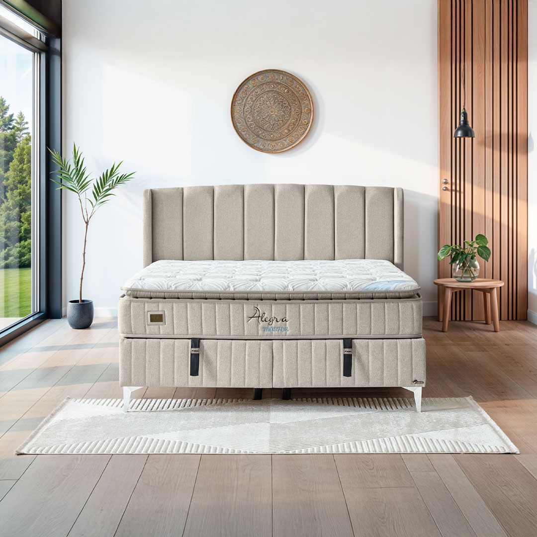Ανακαλύψτε την απόλυτη εμπειρία ύπνου με το σετ κρεβάτι με στρώμα ALLEGRA — έναν εκλεπτυσμένο συνδυασμό σύγχρονου design, πρακτικότητας και πολυτέλειας. Με προσεγμένο σχεδιασμό και ανώτερη ποιότητα κατασκευής, το κρεβάτι ALLEGRA μεταμορφώνει τον χώρο του υπνοδωματίου σας σε ένα καταφύγιο άνεσης και αισθητικής ισορροπίας.
