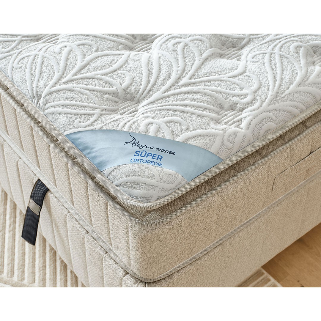 Το σετ περιλαμβάνει και το ορθοπεδικό στρώμα ALLEGRA, εξοπλισμένο με ανεξάρτητα ελατήρια Pocket Spring και ενισχυμένες στρώσεις αφρού υψηλής πυκνότητας, που προσφέρουν σωστή στήριξη της σπονδυλικής στήλης, απορρόφηση κραδασμών και απόλυτη άνεση. Το διαπνέον, υποαλλεργικό ύφασμα του στρώματος εξασφαλίζει υγιεινή και φρεσκάδα καθ’ όλη τη διάρκεια της νύχτας ενώ το επιπλέον ανώστρωμα προσφέρει απαλότητα και την άνεση που ψάχνεις για την απόλυτη εμπειρία ύπνου.
