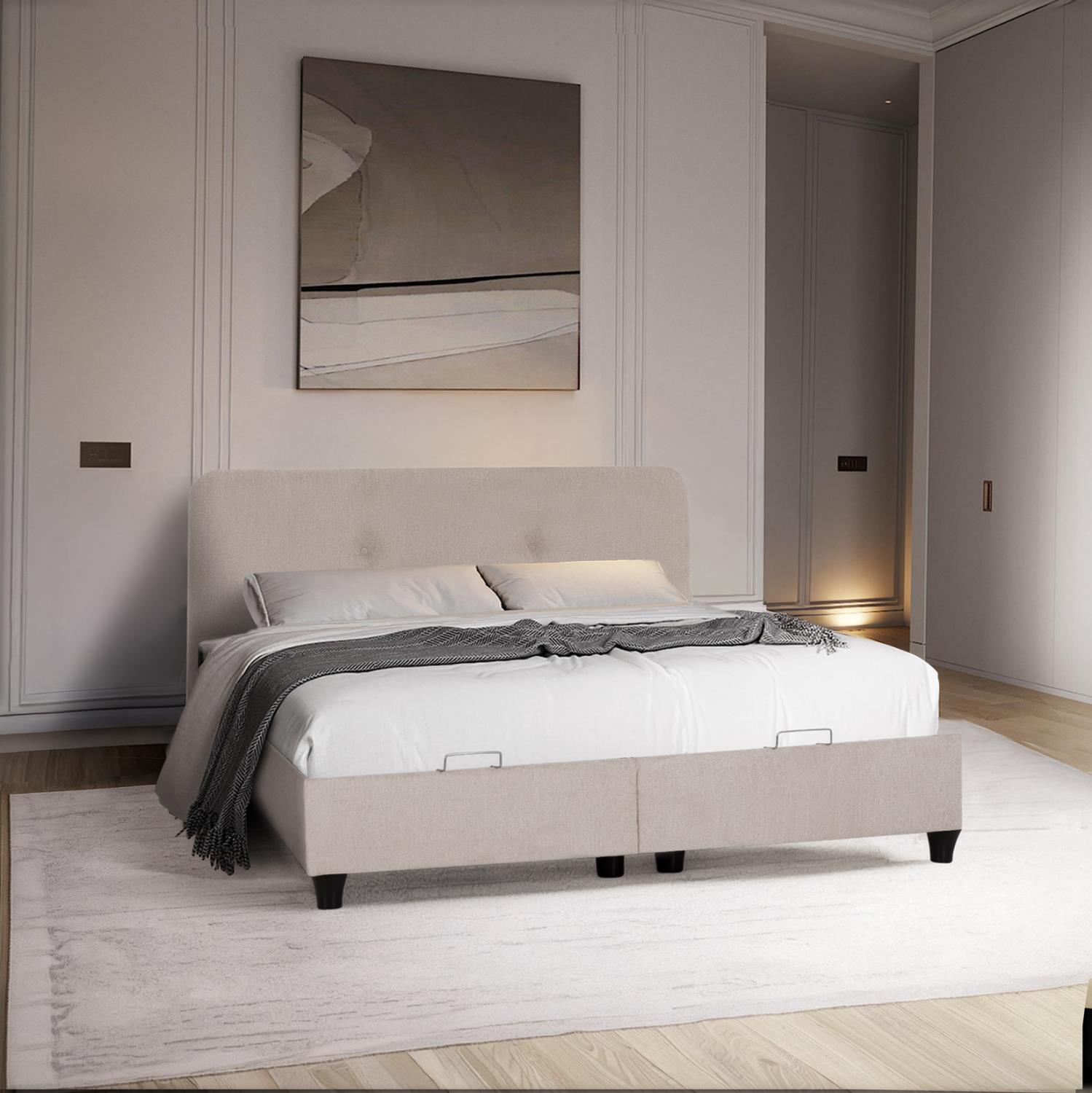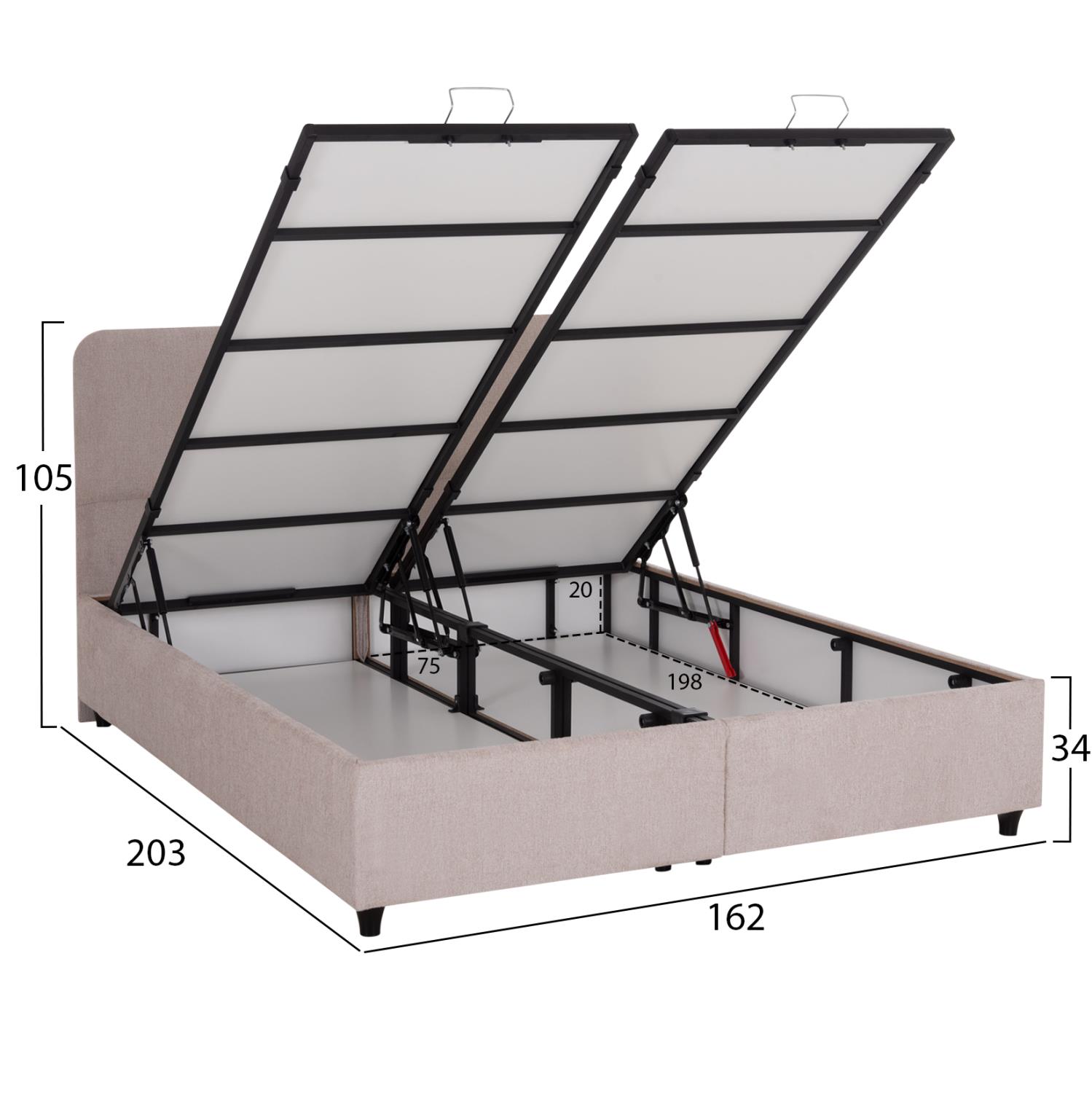 Επενδυμένο Κρεβάτι DOLORES Διπλό με Αποθηκευτικό χώρο Μπέζ Ύφασμα 160x200εκ
